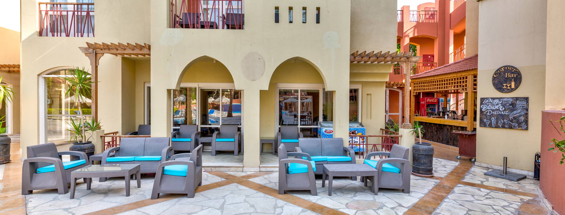 Tento dobře udržovaný hotel byl postaven ve stylu arabské vesnice. Svým hostům nabízí: Hotel nabízí svým hostům 24hodinovou recepci, lobby, hlavní restauraci Solero (mezinárodní kuchyně podávaná formou bufetu nebo a la carte) a (za příplatek) beduínský stan s vodovodním potrubím, bar u bazénu Sea Horse a bar Corner v lobby. K dispozici jsou 2 venkovní bazény se sladkou vodou (1 z nich sezónně vyhřívaný) a dětské brouzdaliště, které se nacházejí uprostřed udržované zeleně a palem a jsou obklopeny sluneční terasou (lehátka, slunečníky a osušky k bazénu v ceně). Dále v hotelu: obchod se suvenýry, 2 konferenční místnosti, malé lázně, prádelna.