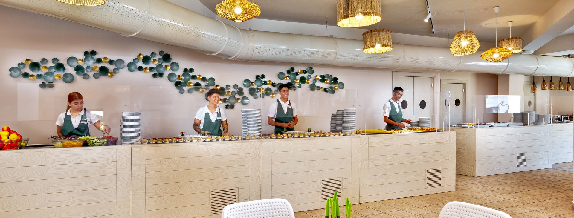 Hotel má hlavní restauraci a bar. Snídaně a večeře (lze vyměnit za oběd) kontinentální podávané formou bufetu v hlavní restauraci, k jídlu je podávána voda a nealkoholické nápoje. Podávají se také bezlepková jídla. Příplatek za plnou penzi (snídaně, obědy a večeře formou bufetu, voda, víno, nealkoholické nápoje k jídlu) je možný. Jednou týdně se pořádá slavnostní večeře a tematická večeře; rezervaci stolu lze provést v ubytovacím zařízení při příjezdu.