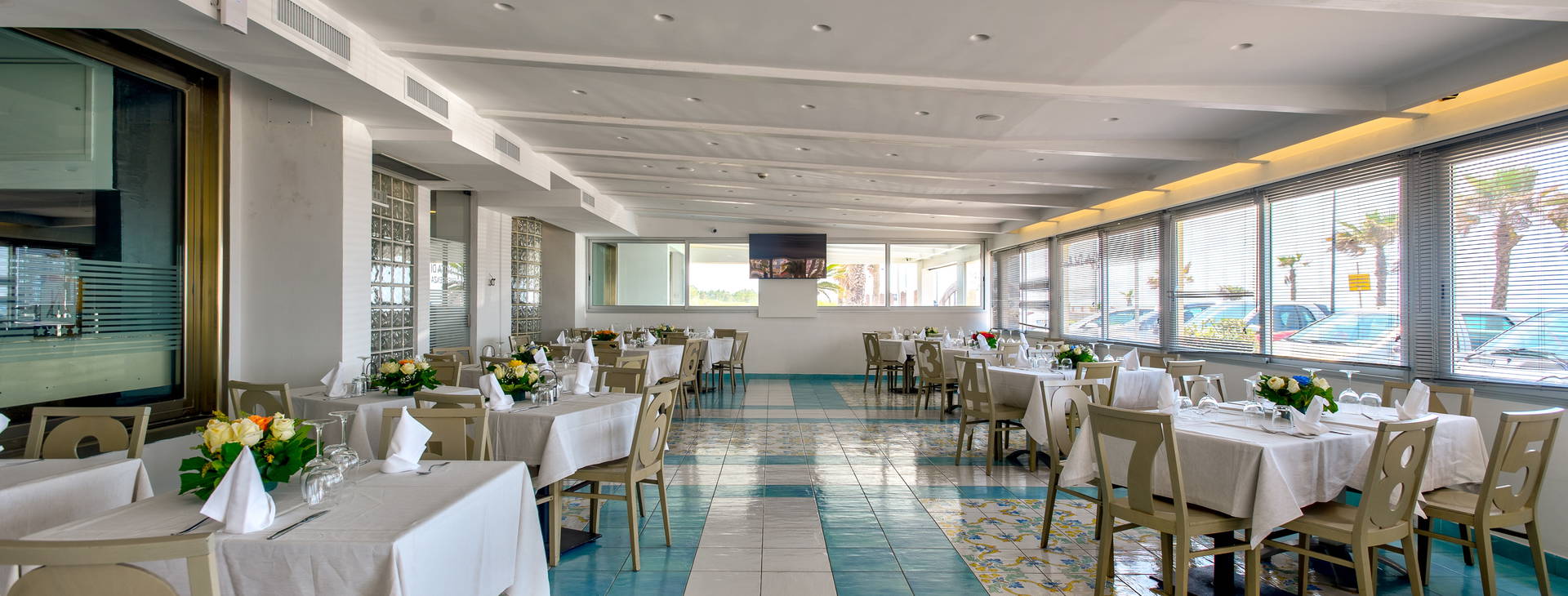 Hotel nabízí stravování HB (snídaně a večeře) a FB (plná penze). Snídaně se podává formou bufetu od 07:00-10:00, obědy (12:30-15:00), večeře (20:00-23:00) a pizzerie je otevřena pro hosty při večeři (úterý-pátek od 20:00-23:00). Nápoje jsou zahrnuty v ceně jídel. K dispozici je také bar u bazénu, kavárna a plážový bar (09:00-19:00).
