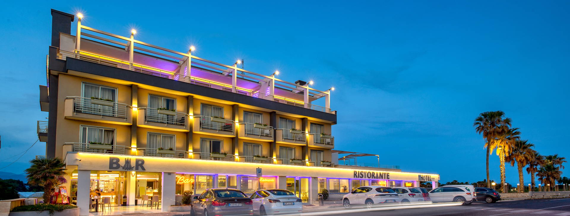 Hotel má písečnou soukromou pláž "Vagabondo" vzdálenou přibližně 16 m (přes ulici). Plážový servis v ceně nabízí 2 lehátka a slunečník na pokoj.