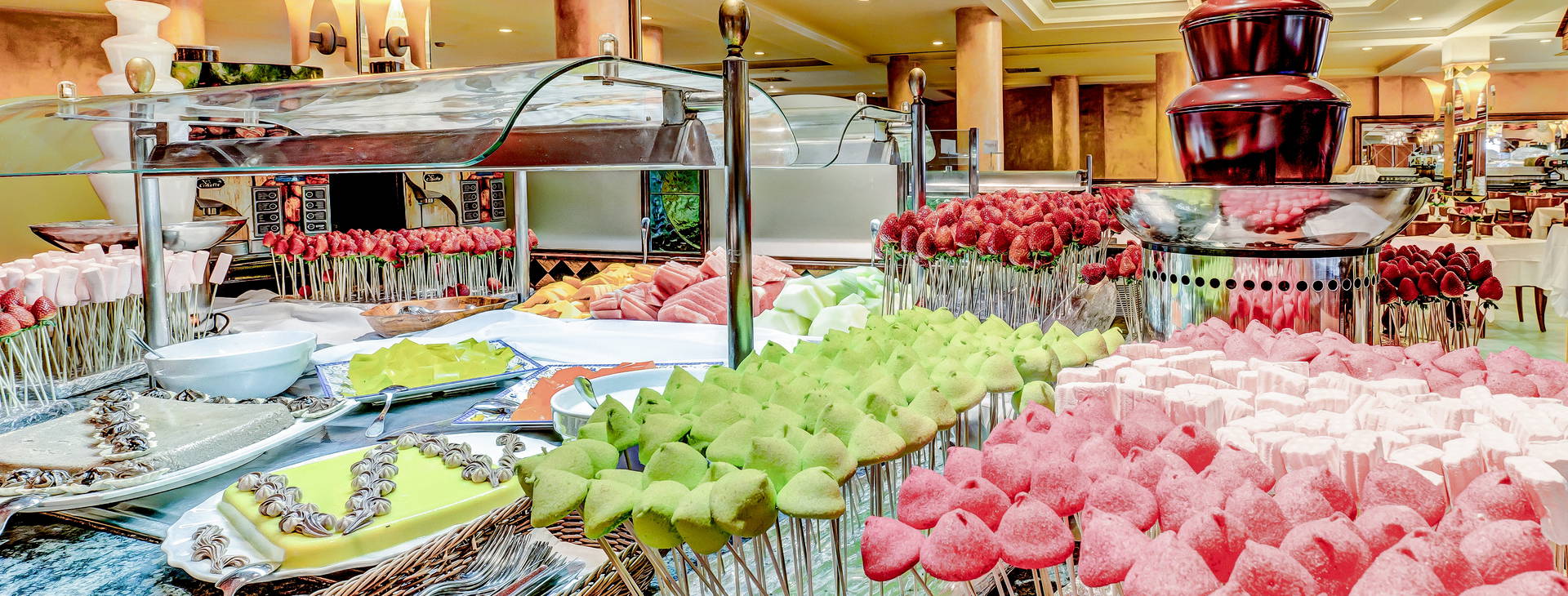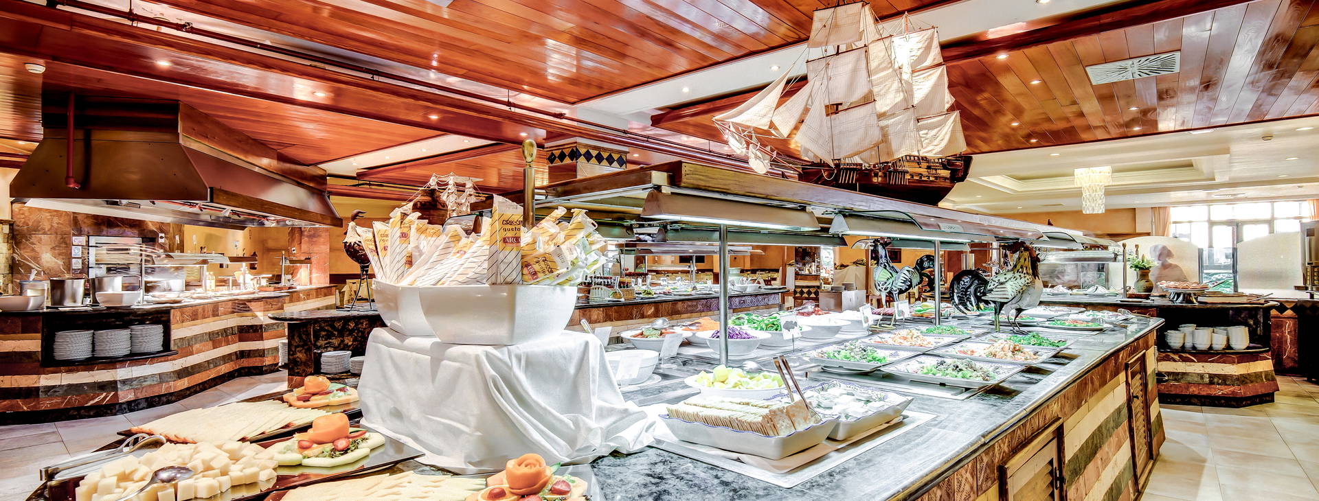 All Inclusive zahrnuje: snídani (8.00-10.30), oběd (12.30-14.00) a večeři (18.00-21.30) formou bohatého bufetu podávaného v hlavní restauraci. Místní alkoholické a nealkoholické nápoje se podávají v hotelových barech (10.00-23.00 h. Odpoledne se v barech podává občerstvení - zákusky, káva, čaj, zmrzlina.