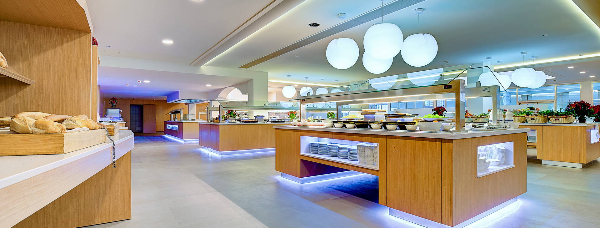 All Inclusive: Snídaně (8:00-10:30), obědy (12:30-14:30) a večeře (18:30-21:30) se podávají v hlavní bufetové restauraci, která nabízí místní i mezinárodní chutě.