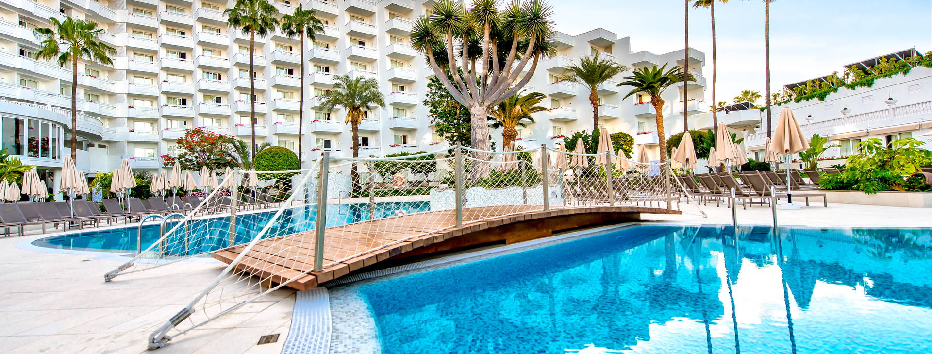 Tento hotel, zrekonstruovaný v roce 2017, doporučujeme pro dospělé. Recepce, vstupní hala, výtahy, hlavní restaurace, polední restaurace a'la carte (za poplatek), bary, 2 bazény (včetně jednoho v zimě vyhřívaného), dětské brouzdaliště, 2 skluzavky, sluneční terasa s lehátky a slunečníky. Hotel poskytuje osušky k bazénu (za poplatek cca 1 €/den ve standardních pokojích).
