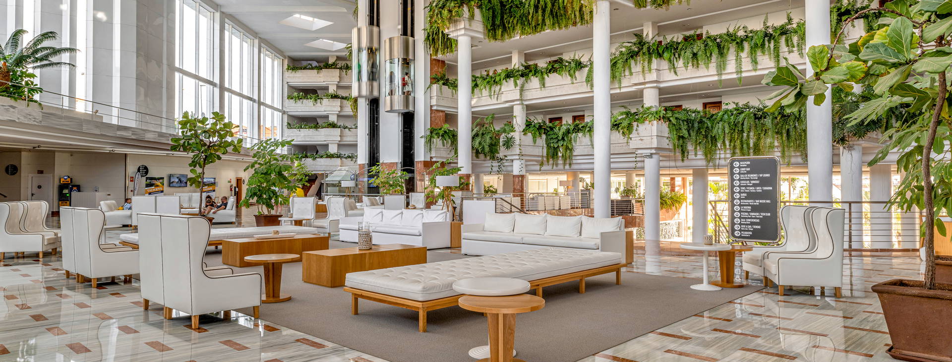 Recepce s lobby, výtahy, 2 bary, bufetová restaurace a tapas bufetová restaurace (v době večeře), restaurace a'la carte (za poplatek), tropická zahrada se 3 bazény (včetně 1 vyhřívaného v zimě a 1 nekonečného pouze pro hosty Platinum Clubu), malý bazén s chrliči vody, dětské brouzdaliště (v bazénech je sladká voda), bez tobogánů, lehátka a slunečníky na slunečních terasách, miniklub, dětské hřiště, úschovna zavazadel, prádelna (za poplatek), prodejna suvenýrů a tisku, půjčovna aut, parkoviště (za poplatek), konferenční centrum. Hotel poskytuje ručníky k bazénu (hotovostní záloha cca 10 Eur/ručník). Hotel nepřijímá domácí zvířata..