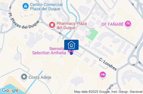 Nachází se v oblíbeném letovisku Costa Adeje přímo na pobřežní promenádě. V bezprostřední blízkosti hotelu se nachází řada obchodů, butiků, barů a restaurací a také autobusová zastávka. Letiště Reina Sofia je vzdáleno přibližně 20 km.