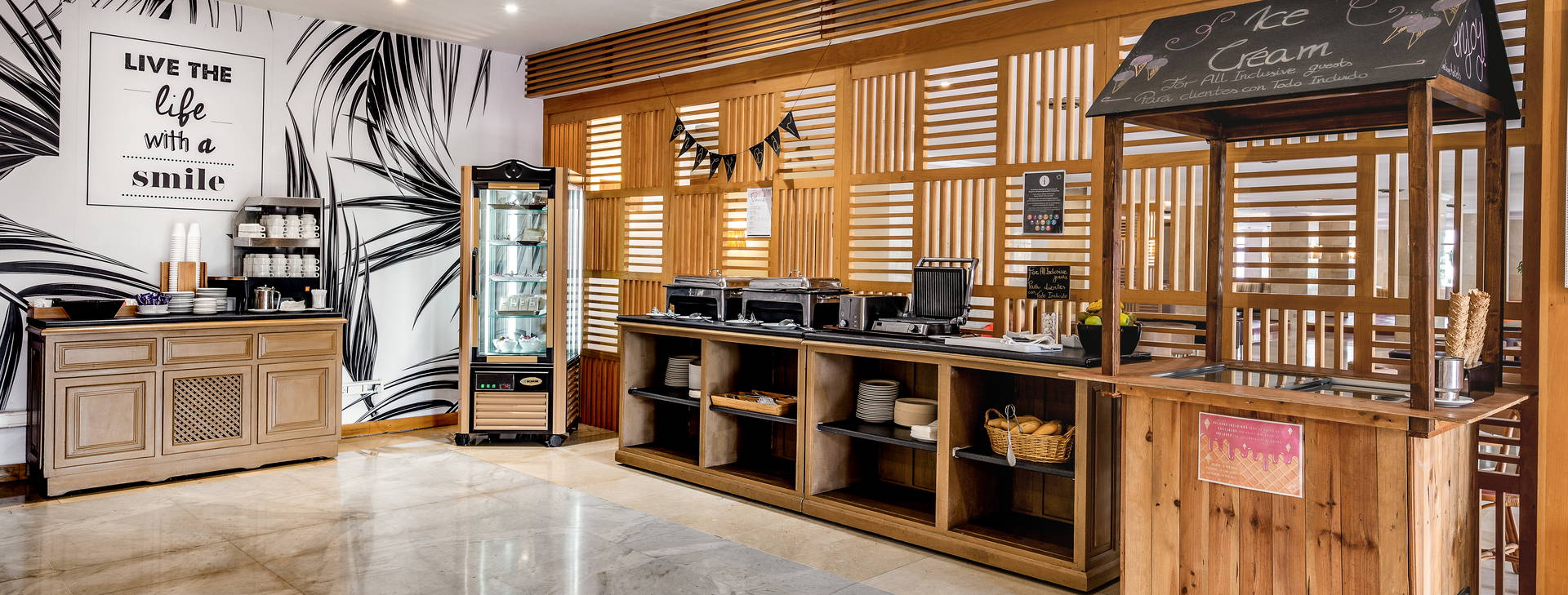 Snídaně a večeře formou bufetu, nápoje k jídlům se platí zvlášť.Je možné si zaplatit All inclusive: snídaně (07:30-10:00), oběd (13:00-15:00) a večeře (18:45-21:45) formou bufetu. Občerstvení mezi jídly v časech a na místech určených hotelem. Místní alkoholické a nealkoholické nápoje jsou k dispozici v hotelových barech od 10:30 do 23:00. Existuje možnost zaplatit příplatek za All Inclusive Plus (pouze pro osoby starší 18 let) (včetně Bacardi Rum, Arehucas, Ricard Liqueur, Moskovkaya Vodka, Johnnie Walker Red Label, Gordon´s Dry Gin, Beefeater, Baileys, Smirnoff Vodka, JB).