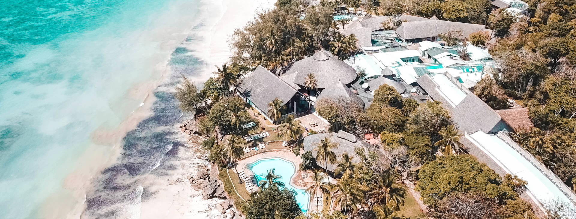 .Hotel se nachází přímo na široké bílé písečné pláži Diani Beach. Lehátka a slunečníky jsou zdarma k dispozici v oddělené části hotelové zahrady.