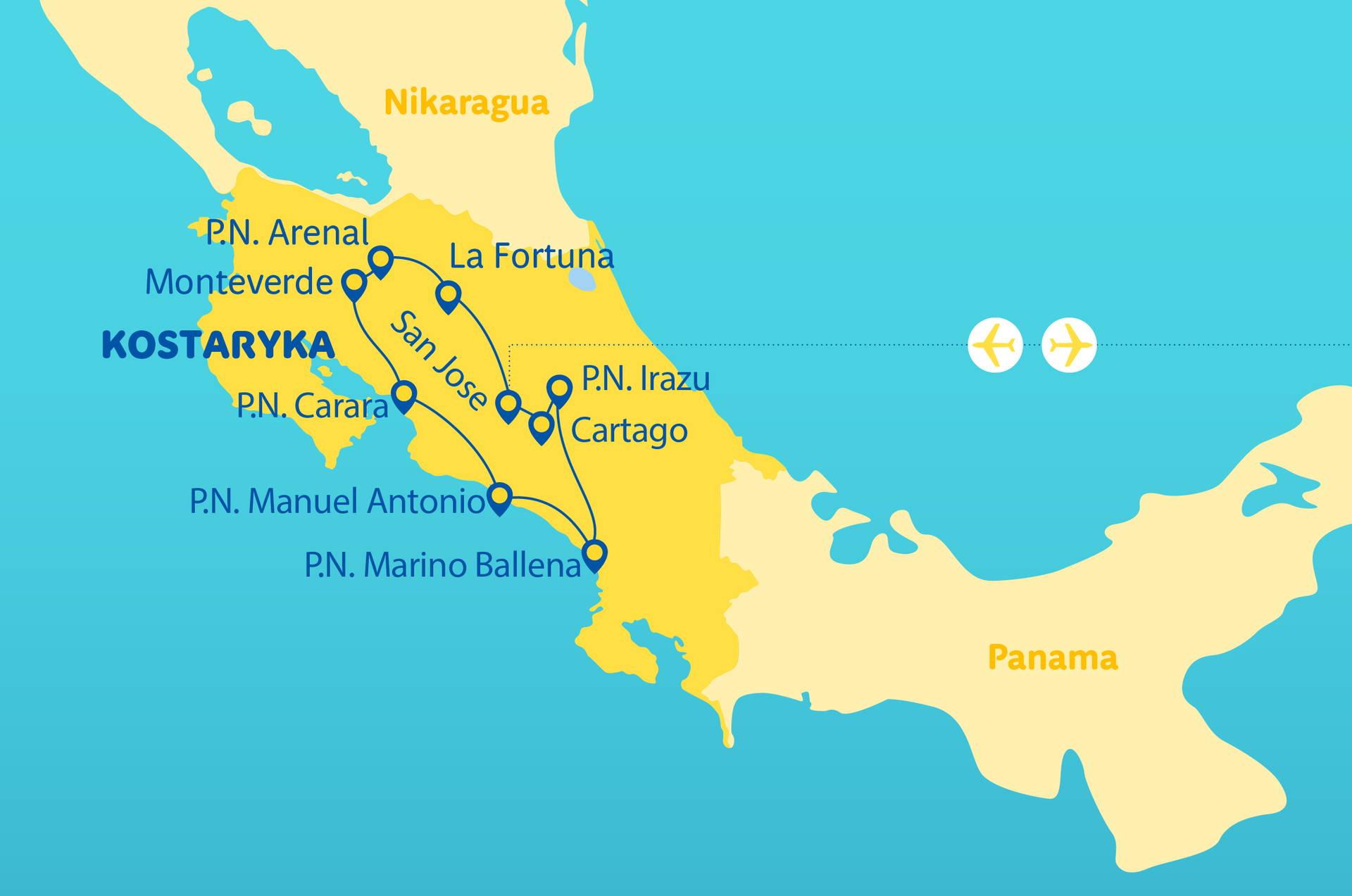 Po snídani odjezd z hotelu. Transfer na letiště v San José, odlet do Polska (přes některý z evropských přístavů). (Trasa cca 160 km).