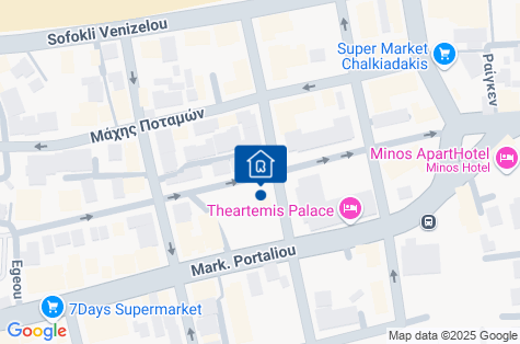 Hotel se nachází v mimořádně atmosférickém městě Rethymnon na severním pobřeží Kréty. Centrum města s mnoha hospůdkami, restauracemi, benátskou pevností a úzkými uličkami plnými podniků a obchůdků je vzdáleno cca. 900 m od hotelu, pro milovníky přírodních zajímavostí: Přírodní park Biotopoi (cca 1 km), kde můžete obdivovat přírodní flóru Kréty a zvířata obývající ostrov. Rethymnon je také výborným výchozím bodem pro výlety do Chanie (cca 66 km) a Heraklionu (cca 79 km).