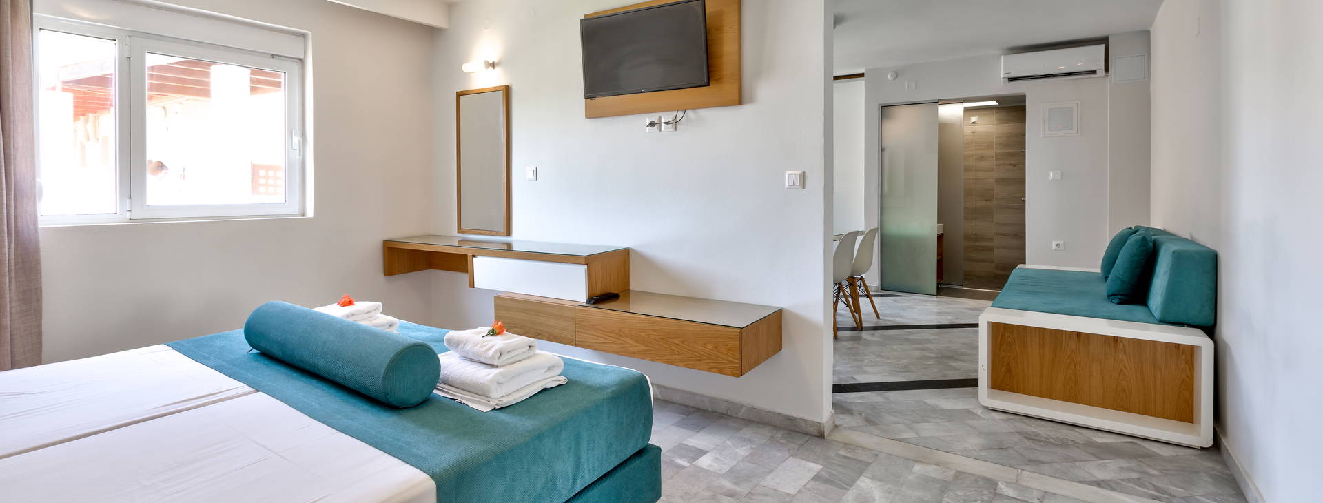 Příjemný hotel v klidné oblasti, vhodný pro rodiny s dětmi díky možnosti ubytování v pokojích 2+2. Dalšími výhodami jsou blízkost pláže a možnost all inclusive.