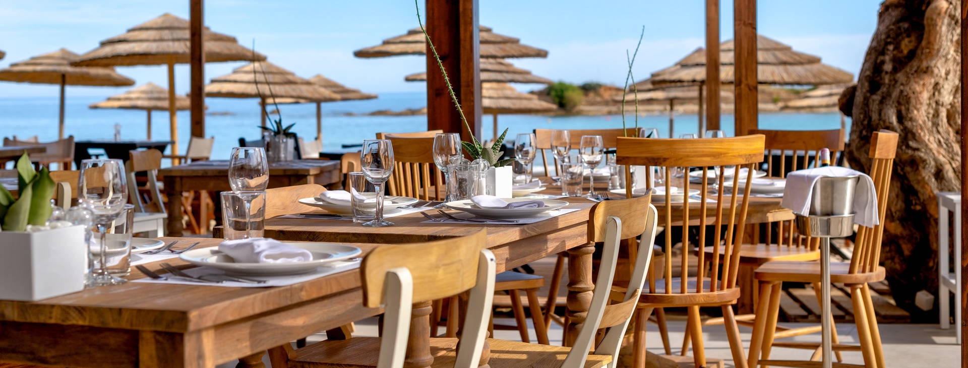 Snídaně (7:30-10:30) a večeře (18:30-21:30) se podávají formou bufetu v hlavní restauraci resortu High Beach. Za příplatek možnost all inclusive.