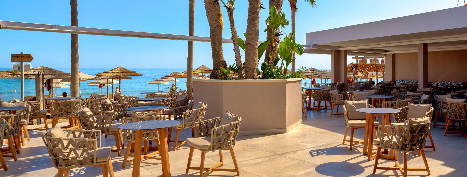 Recepce 24 hodin denně, relaxační bazén, restaurace Elia (nutná rezervace předem, za poplatek), zahrada, soukromé parkoviště, lékařské služby, lehátka a slunečníky označené číslem pokoje jsou na pláži rezervovány (předem objednány).