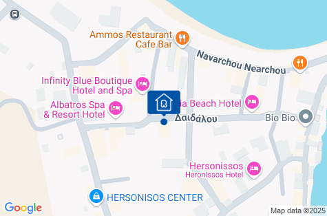 Pětihvězdičkový hotel Hersonissos Palace se nachází ve městě Hersonissos na Krétě. Hotel se nachází přibližně 27 km od letiště Heraklion a 173 km od letiště Chania. Hotel nabízí snadný přístup do centra města Hersonissos, které je plné barů, restaurací a obchodů. Hosté si mohou užívat jak blízkost pláže, tak rušný noční život tohoto oblíbeného letoviska.