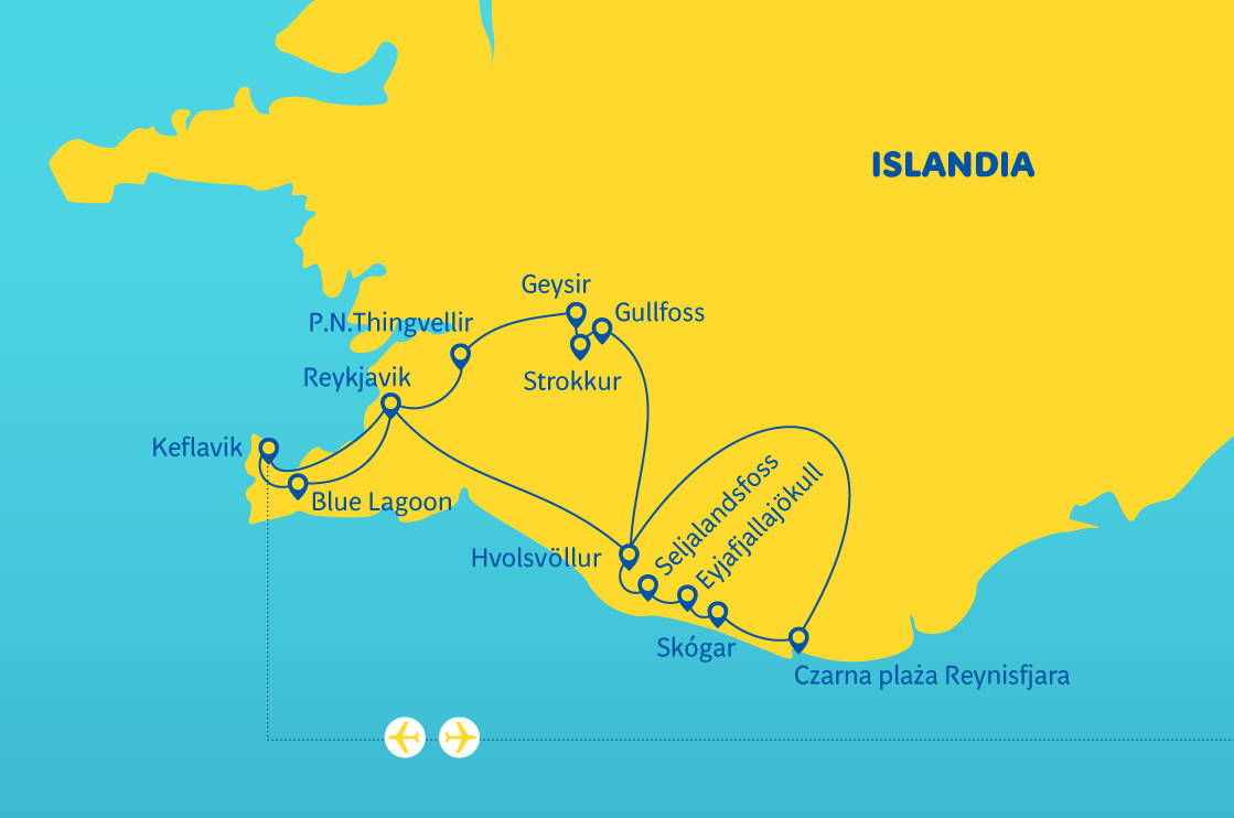 Po snídani vystěhování a prohlídka Reykjavíku. Během prohlídky uvidíme mimo jiné největší islandský kostel Hallgrímskirkja, Harpu - moderní koncertní a konferenční centrum, které je symbolem města, katedrálu a parlament. Dále návštěva Perlanu - futuristické budovy se skleněnou kopulí, v níž se nacházejí multimediální expozice o islandské přírodě, umělá ledová jeskyně, planetárium a terasa s panoramatickým výhledem na Reykjavík. Na závěr prohlídka FlyOver Iceland - velkolepá simulace letu nad Islandem se speciálními efekty. Volný čas na vlastní prohlídku Reykjavíku a oběd. Transfer na letiště v Keflavíku, cestou možnost koupání v unikátních geotermálních lázních Modrá laguna (za příplatek cca 110 EUR/osoba). Voda ke koupání má stálou teplotu 37-39 °C, pochází z hloubky 2 000 m a minerální soli v ní obsažené mají zdraví prospěšné účinky. V ceně vstupenky je ručník, bahenní maska a 1 nápoj (nealkoholický nebo pivo/víno). Zpáteční let do Polska (trasa cca 70 km).