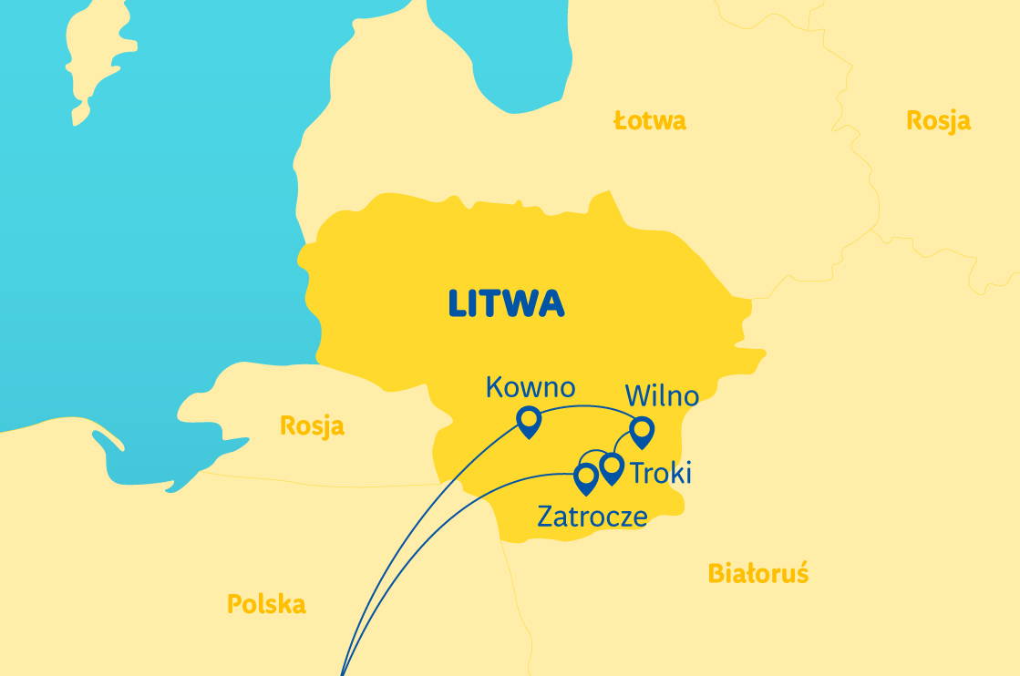 Cena nezahrnuje: vstupenky do navštěvovaných objektů, výstup na horu Giedymina, plavbu lodí do Zatrocza, služby místních průvodců, služby v systému tour guide, turistické daně (povinný poplatek celekm cca 100 EUR/os. – balíček služeb placený průvodci zájezdu na místě v hotovosti).