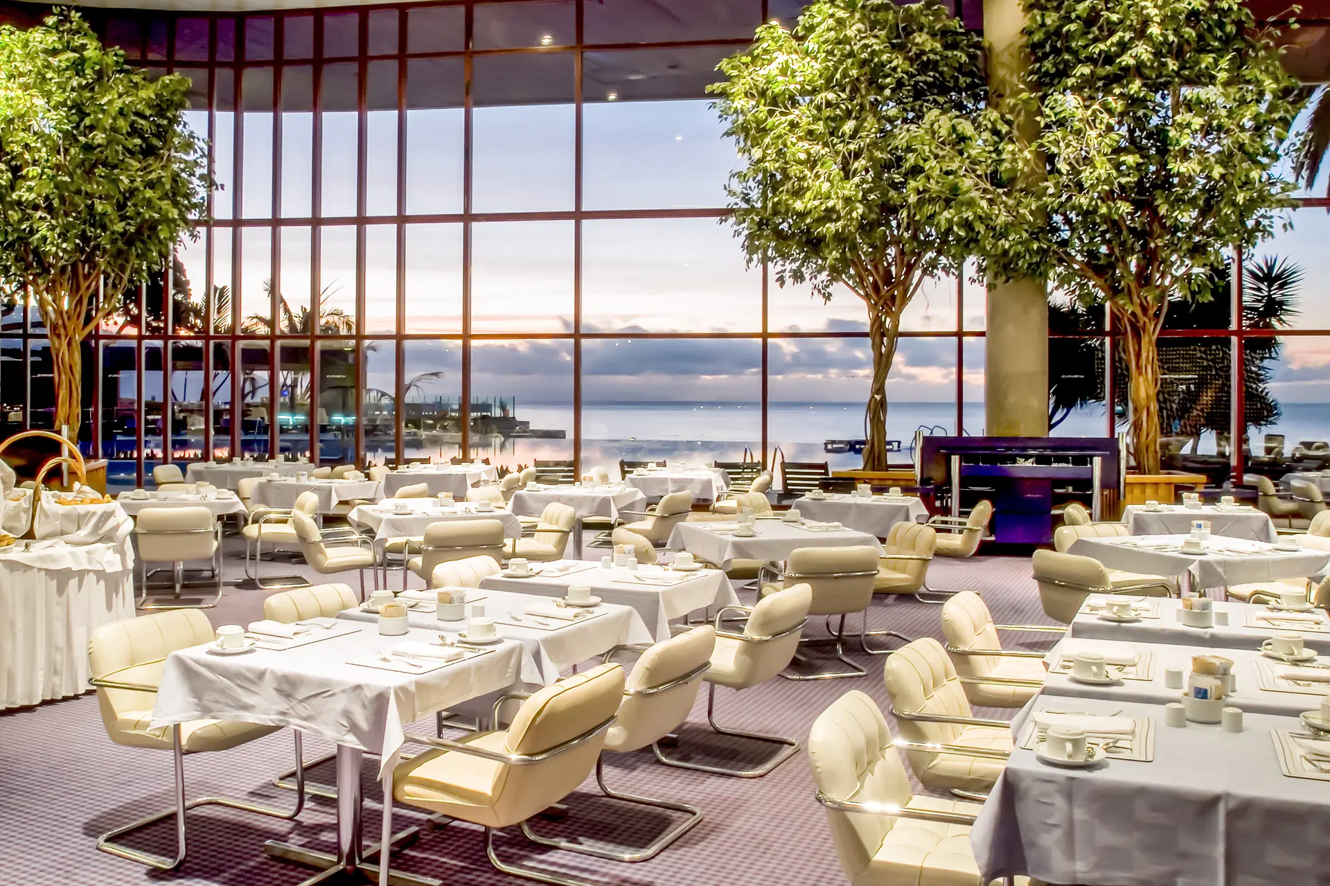 Snídaně formou kontinentálního bufetu (7.30-10.00, jídla a'la carte za příplatek). Obědy (12.30-15.30, salátový a dezertový bufet, hlavní jídlo z menu) a večeře (19.00-21.30, bufet) jsou za příplatek. Hotel nabízí vegetariánská a bezlepková jídla.