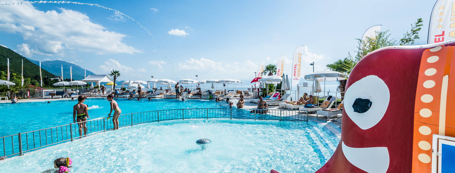.Hotel má soukromou písčito-oblázkovou pláž, která je uměle vytvořena na slunečních terasách na břehu jezera a je ideálním místem k odpočinku. Přístup k jezeru z mola po schůdcích. Lehátka a slunečníky na pláži zdarma. Plážový bar (za poplatek) obklopený vegetací a barevnými květinami.