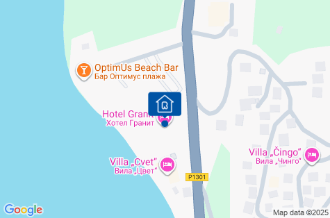 Třípatrový hotelový komplex Granit se nachází přímo na břehu Ohridského jezera a je obklopen parkovou zelení. Do centra Ohridu je to cca 5 km (autobusová zastávka cca 200 m od hotelu). Na nejbližší letiště cca 12 km.
