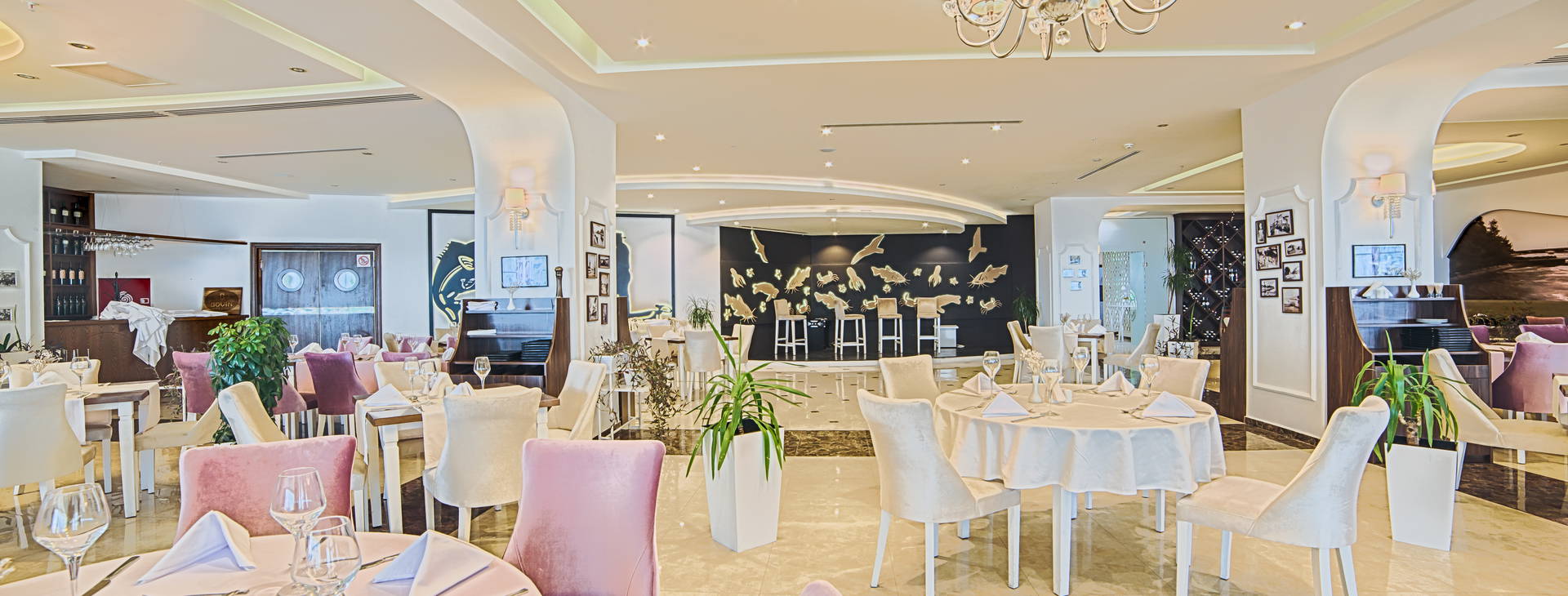 Snídaně formou bufetu (07:00 - 10:00) a večeře (19:00 - 21:30; nápoje k večeři se platí zvlášť, jídla formou bufetu). Součástí hotelu je také restaurace a'la carte (za příplatek; servírovaná jídla) otevřená na obědy (13:00-14:00) a večeře (19:00 - 21:30).