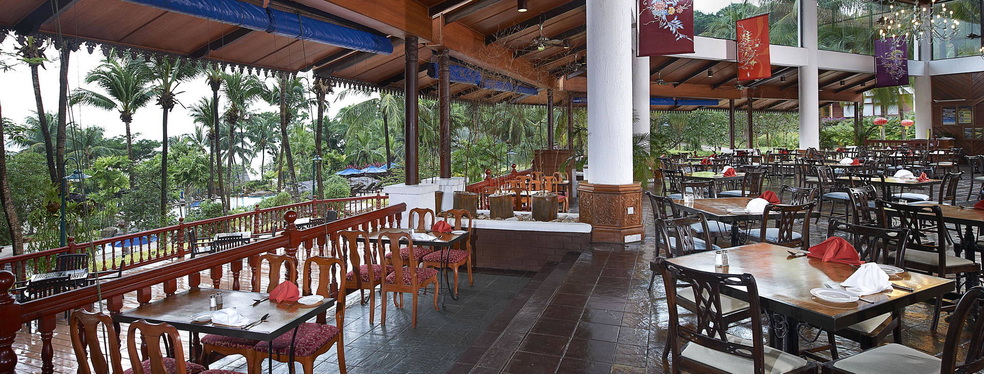Během pobytu je hostům poskytována snídaně. Za poplatek mohou využít také několik hotelových restaurací, včetně Dayang Café, kde se podávají vynikající pokrmy malajské a mezinárodní kuchyně, Pahn-Thai, kde se podávají thajská jídla, a Mizumi Japanese, kde se podávají japonská jídla. K dispozici je také plážová restaurace, restaurace s orientální kuchyní a snack bary.