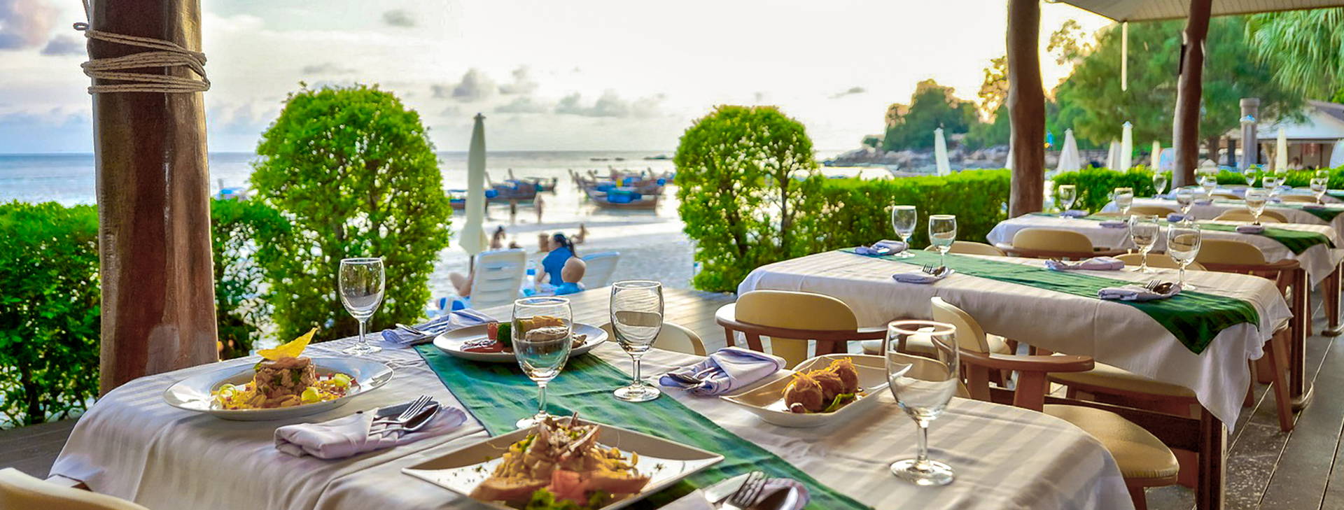 Hotelová restaurace se nachází přímo na pláži a nabízí úžasný výhled a thajskou i mezinárodní kuchyni. Je otevřena denně od 7:30 do 22:00 a v nabídce jsou čerstvé mořské plody z Andamanského moře. Plážový bar nabízí místní i dovážené nápoje včetně vín a šampaňského a je otevřen od 10 do 22 hodin.