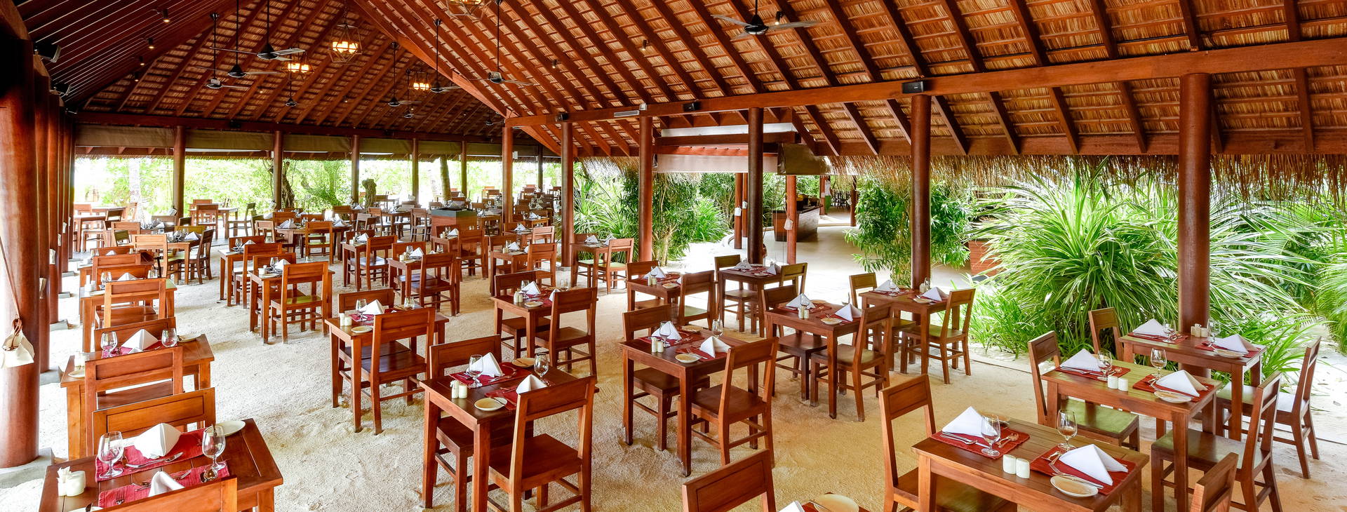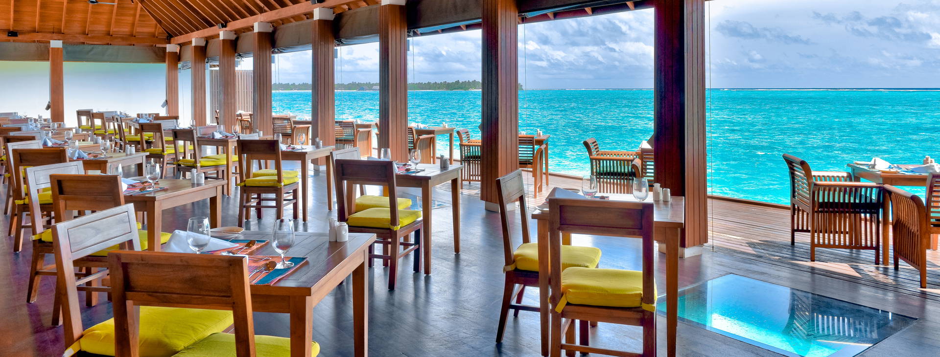 .Recepce, hlavní restaurace Samuga (pro pokoje: zahrada, bungalov superior, superior vista a superior beach) a Hiya na terase u oceánu (pro pokoje: premium beach a vily na vodě), restaurace a'la carte (místní speciality, mořské plody, pizza a tapas), bar Nevi. Nekonečný bazén - vytváří dojem spojení s oceánem, lehátka, slunečníky a osušky u bazénu zdarma. Dále: lázeňské centrum, obchody se suvenýry, občerstvením a šperky.