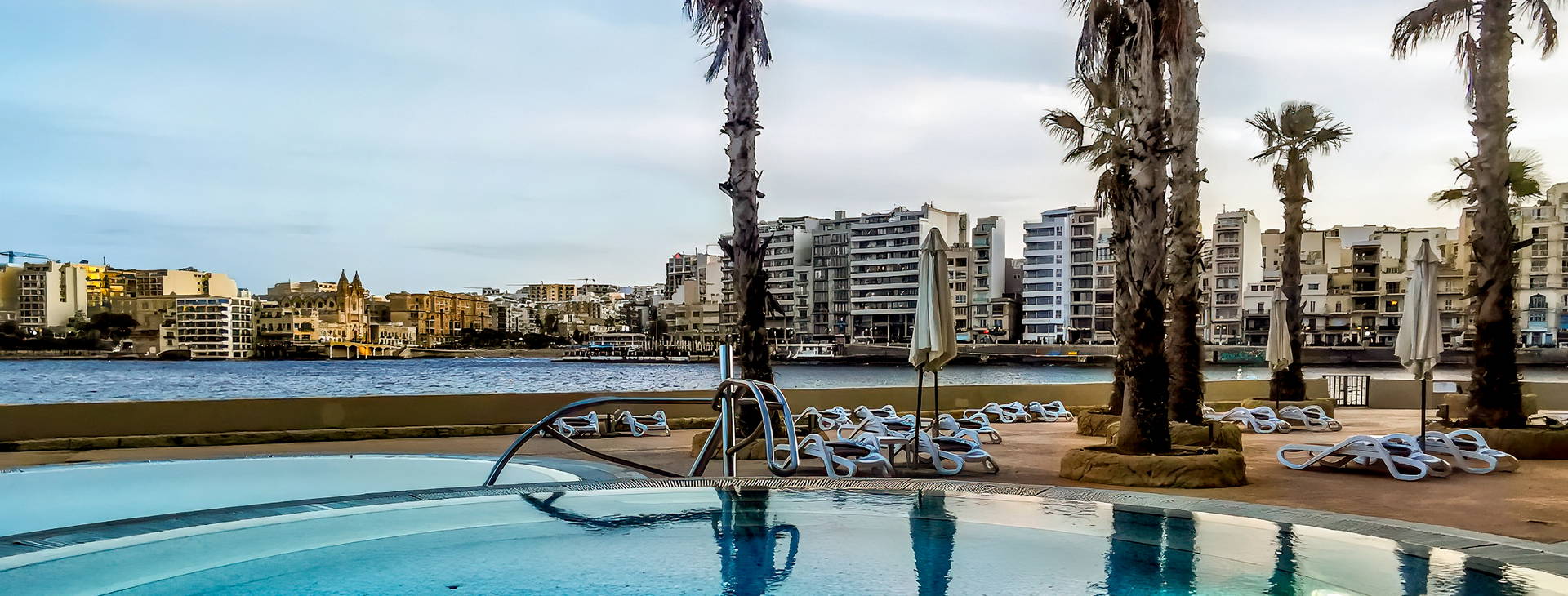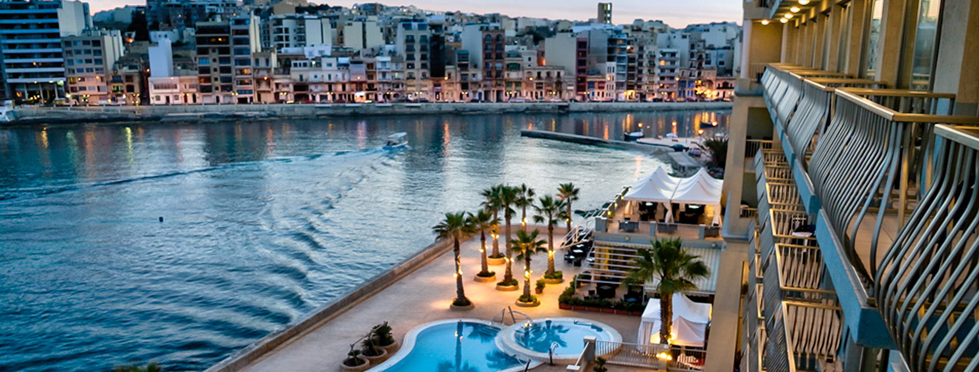 Hotel se nachází v obci Saint Julian's v severní části ostrova Malta, asi 10 km od letiště. Hlavní město Valletta je vzdáleno přibližně 8 km a snadno se do něj dostanete veřejnou dopravou, přičemž autobusová zastávka je asi 500 metrů od hotelu. V bezprostřední blízkosti hotelu se nachází přístav, kasino, restaurace a bary. Taxi si lze objednat přes recepci hotelu a nejbližší autopůjčovna je vzdálena přibližně 700 metrů.