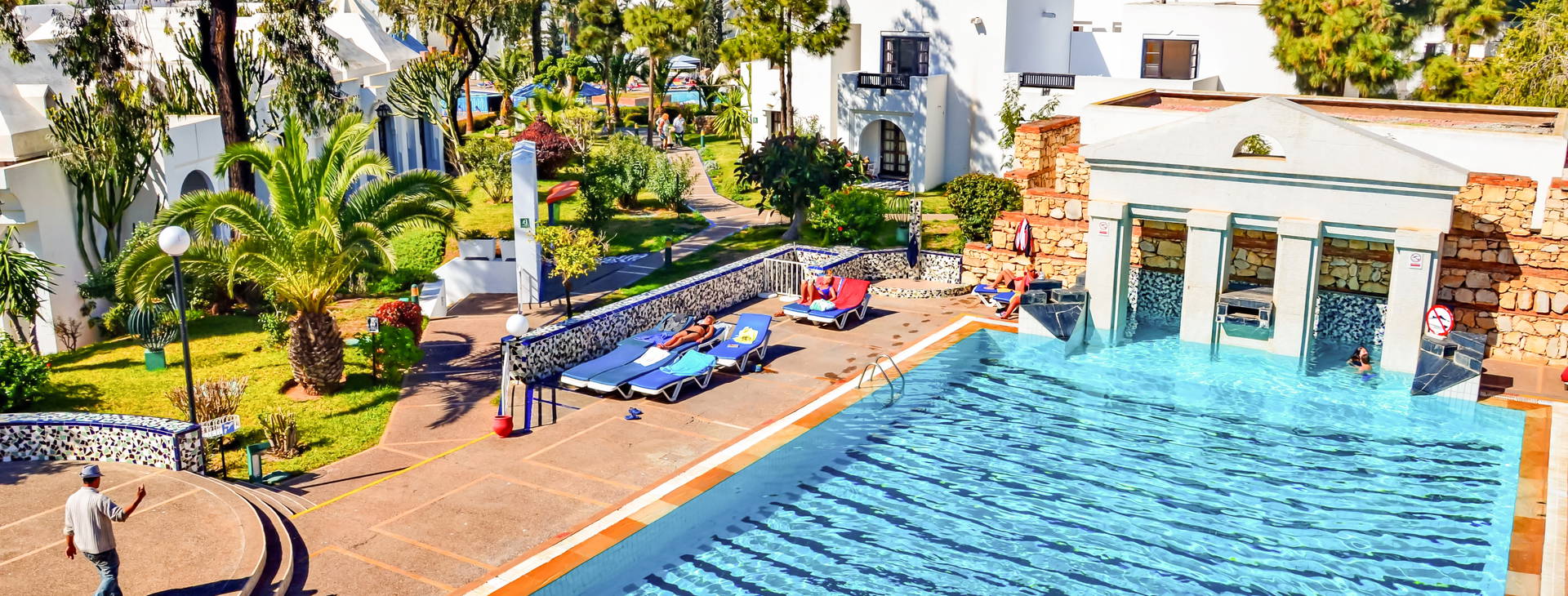Velký rezortní komplex se nachází v rozlehlé a dobře udržované zahradě. V blízkosti hotelu se nachází centrum Agadiru, kam se dostanete pěšky (asi 10 minut chůze) nebo místním taxi. V okolí se nachází dobrý výběr barů, obchodů a restaurací, stejně jako mnoho dalších zařízení a atrakcí. Letiště Agadir je vzdáleno přibližně 30 km od hotelu.