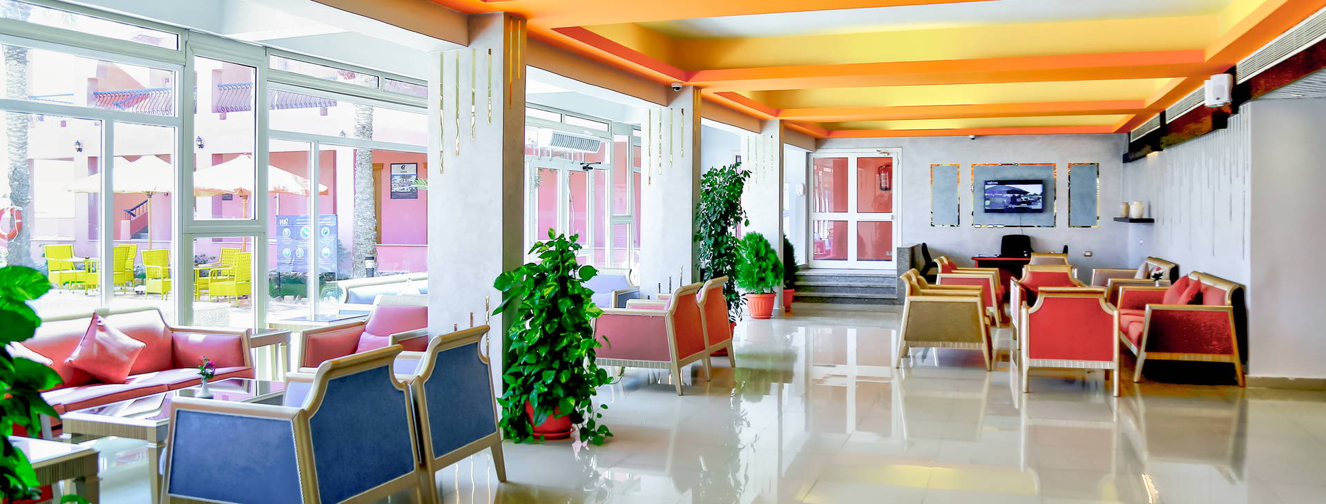 Recepce 24h, hlavní restaurace, restaurace u bazénu „The Grill”, italská restaurace a'la carte „Poseidon”, 4 bary (2 bary u bazénu „Sailors bar” a „Scuba bar”, plážový bar „Pirates bar” a „Waves” (diskotéka)), posilovna, tenisový kurt, dětský klub, lékárna a 3 bazény (mimo jiné: hlavní bazén s vířivkou, dětský bazén (v zimě vyhřívaný) a speciální bazén pro nácvik potápění). Lehátka a slunečníky jsou k dispozici zdarma. Za příplatek: wellness, kosmetický salon a prádelna.