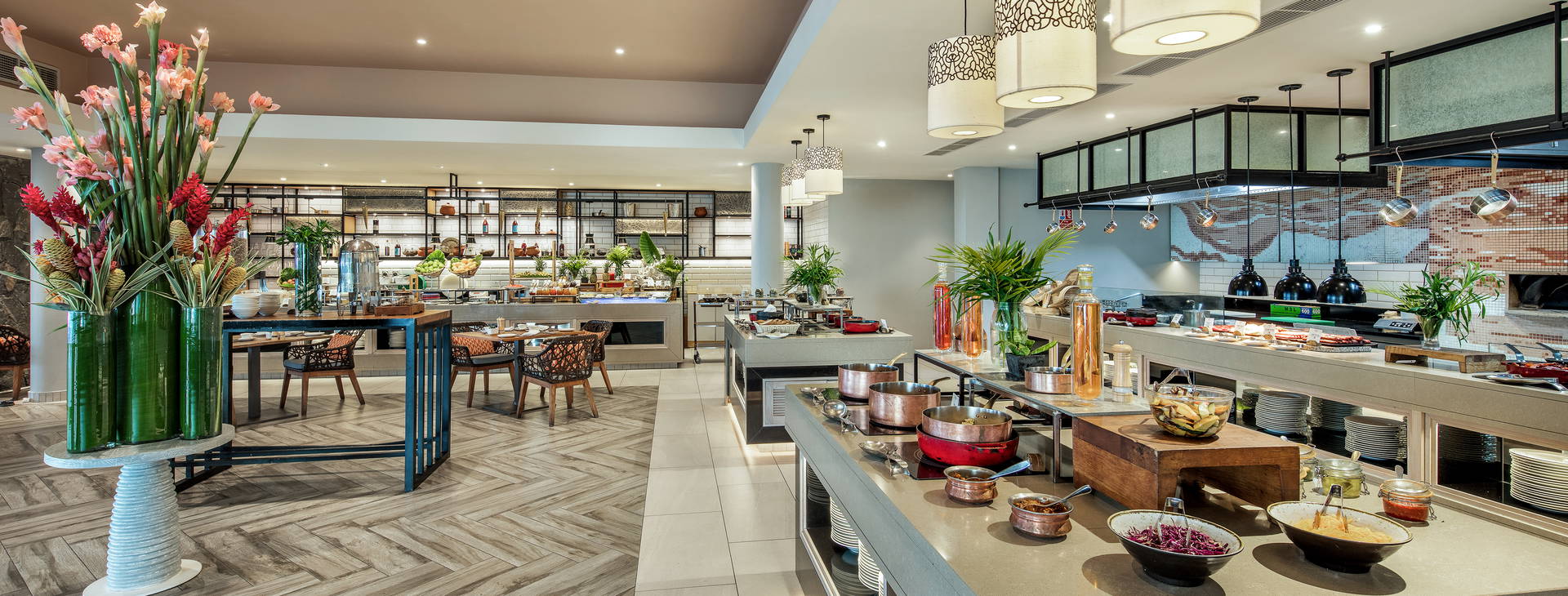 K dispozici je 5 restaurací a'la carte, které nabízejí různé pokrmy světové kuchyně - místní, indickou, čínskou, francouzskou a kreolskou kuchyni.