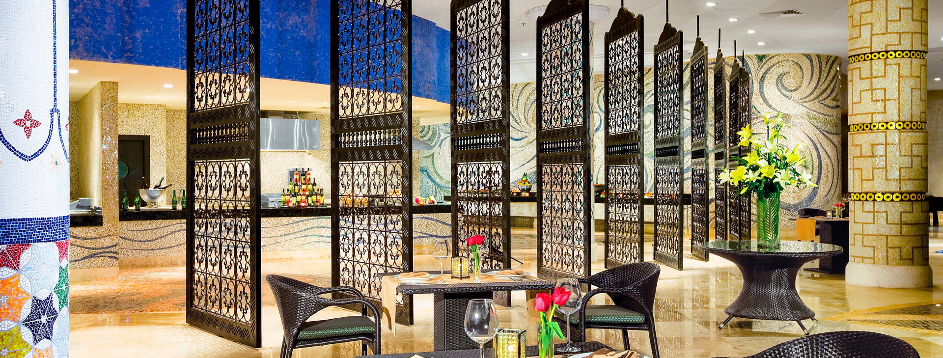 Recepce, lobby, výtahy, 6 restaurací a'la carte (rezervace není nutná), bufet, barbecue, kavárna, 6 barů (včetně baru u bazénu), vyhřívaný nekonečný bazén s výhledem na moře, vířivka, obchod se suvenýry, business centrum, konferenční místnosti, směnárna. Za příplatek: služby prádelny, pronájem aut.