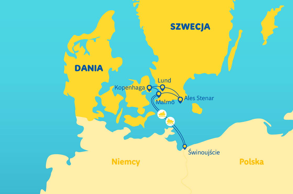 Cena zahrnuje: cestu pohodlným autokarem (klimatizace, WC, video, minibar), trajekt na trase Swinoujscie - Malmö (ubytování ve vnitřních kajutách) a Malmö - Swinoujscie (bez kajut), ubytování v hotelech (2 započaté hotelové noci), snídaně (3: 1 na trajektu, 2 v hotelech), péči polského průvodce a pojištění TU Europa SA (NNW, KL, Asistence a zavazadla).