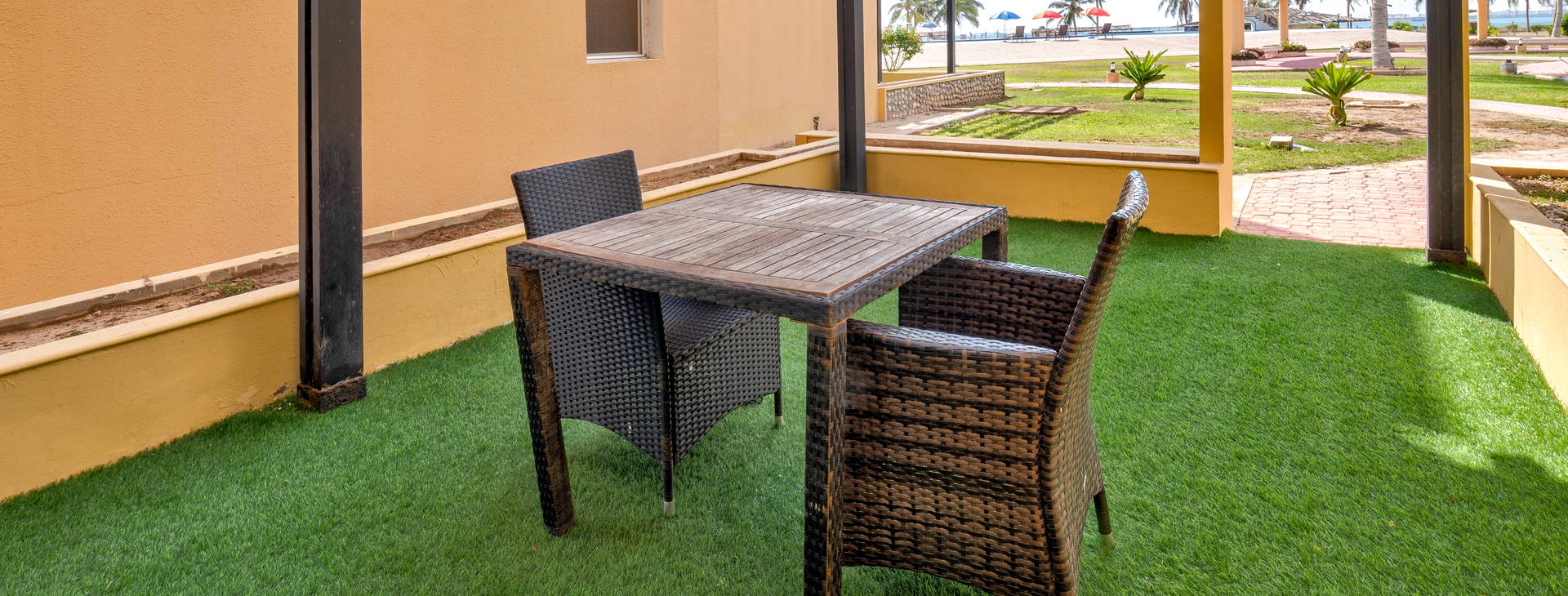 24hodinová recepce, lobby, prádelna (za poplatek) a výtahy. Hosté hotelu mohou využít hlavní restauraci, kde se podávají jídla místní a mezinárodní kuchyně formou bufetu, a bar u bazénu (za poplatek; s občerstvením a nealkoholickými nápoji). K dispozici je venkovní bazén nepravidelného tvaru a dětské brouzdaliště u pláže. Lehátka a slunečníky u bazénu jsou k dispozici zdarma.