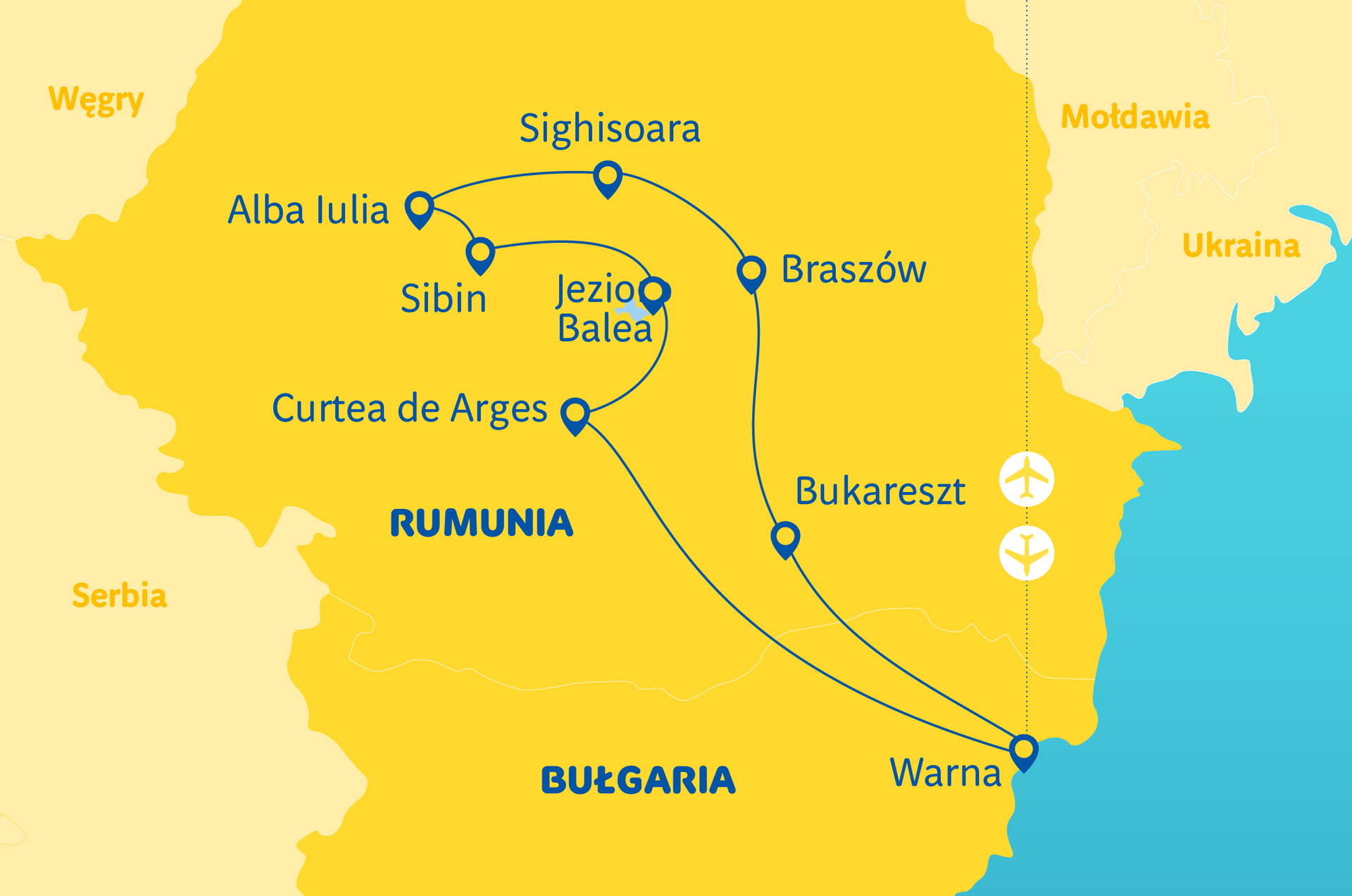 Bukurešť – „Paříž Balkánu“ • Solný důl Salina Prahova • Scheiova brána • Opevněné hrady • Muzeum mučení • Alba Julia – hlavní město Transylvánie • Hrad Hunedoara – jeden ze 7 divů Rumunska • Sibiu – město umělců • Železný most lhářů • Transfăgărășan