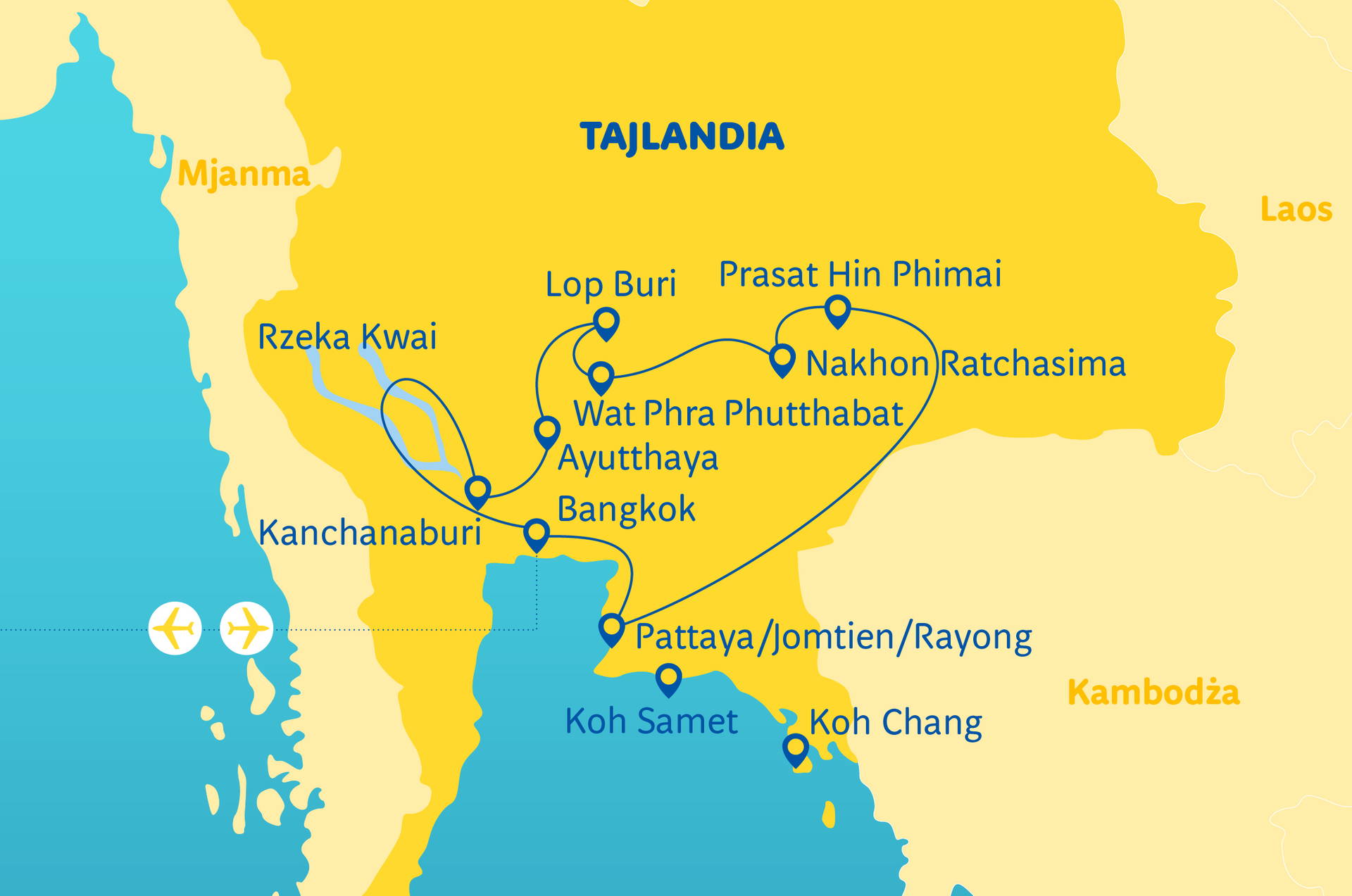 Zákazníci, kteří si zvolí další týdenní pobyt v Pattaya/Jomtien/Rayong, na Ko Samet nebo na Ko Chang- po snídani transfer na letiště v Bangkoku a návrat charterovým letadlem společnosti LOT nebo jiným širokotrupým letadlem (let bez mezipřistání) do Polska. Aktuální letové řády naleznete na r.pl/letové řády.