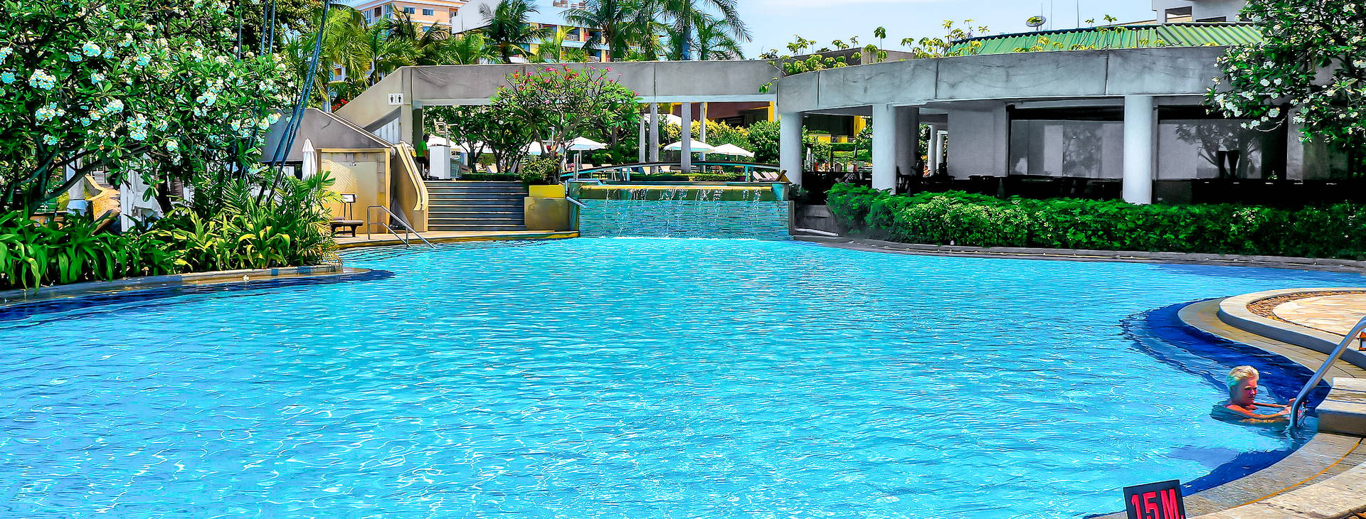 v hotelové restauraci, baru a ve většině hotelů v bazénu