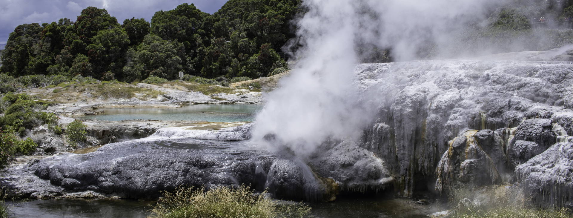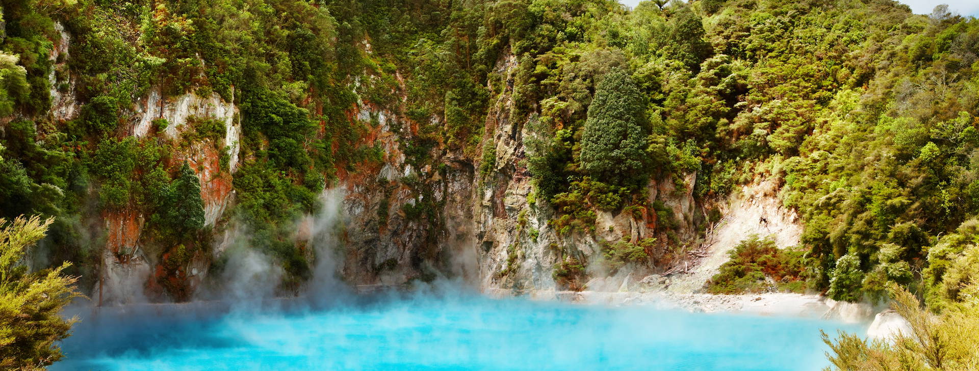 Po snídani navštívíme centrum Rotorua - historické lázeňské město. Prohlédneme si anglikánský kostel s prvky maorské architektury, který se nachází v centru maorské vesnice, a dům setkávání maorských starších (zvenčí). Poté přejezd do termální zóny - Te Puia, kde se nachází mnoho bahenních jezírek, ďábelských jam s vroucí vodou a nos dráždícími výpary. Pokud budeme mít štěstí, budeme pozorovat erupci dalšího gejzíru - Pohutu. V zóně se nachází také ptačí symbol Nového Zélandu - pták Kiwi - umístěný ve zvláštním "domečku". Součástí programu je také ukázka maorského tance a místního folklóru. Odpoledne přejezd do další termální zóny Waimangu - procházka nejmladším ekosystémem na Zemi, obdivování "pánve", největšího přírodního vřícího jezírka na světě. Na závěr pěší plavba lodí po jezeře. Volný večer k nákupu suvenýrů v mnoha obchůdcích na hlavní ulici města Fenton Street nebo možnost vyrazit do tradiční maorské vesnice na maorský večer - včetně tradičního přivítání, prohlídky vesnice, pece na hlínu Hangi, maorského tance a zpěvu a zakončení večeří formou bufetu - příplatek cca 290 NZD/os. Přenocování v hotelu v oblasti Rotorua. (Trasa cca 50 km)