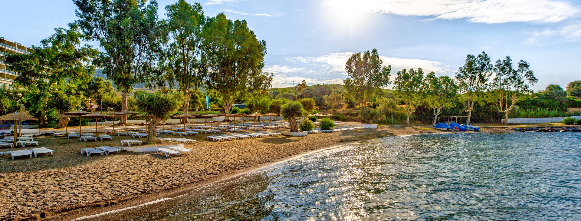 Písčitá pláž s jemnými oblázky a pozvolným sestupem do moře se nachází přibližně 100 m od objektu. Plážový servis je pro hotelové hosty zdarma.