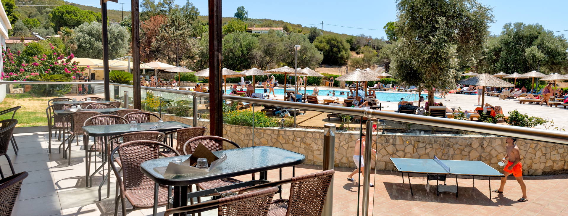 All Inclusive zahrnuje: snídaně (7:00-10:00), obědy (12:30-14:30), večeře (19:00-21:30) podávané formou bufetu. Kromě toho se podává občerstvení (10:00 - 18:00) v baru u bazénu. Ve stejném baru se podávají nealkoholické nápoje, jako jsou džusy, voda, káva a čaj, a také místní alkoholické nápoje - pivo, víno, ouzo, brandy a různé likéry. Bar je k dispozici od 10:00 do 23:00. Lobby bar je otevřen pouze mimo sezónu a v případě nepříznivého počasí.