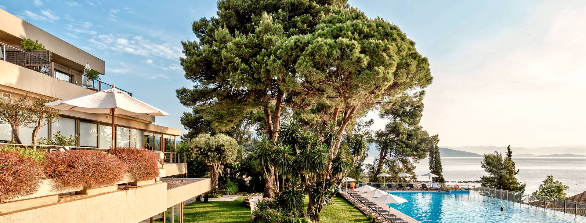 Rozsáhlý hotelový komplex ve velmi dobře udržovaných zahradách. Přibližně 6 km od centra malebného městečka Korfu. Hlavní město ostrova nabízí mnoho barů, taveren, restaurací, obchodů atd. Transfer z letiště do hotelu trvá přibližně 10 minut.