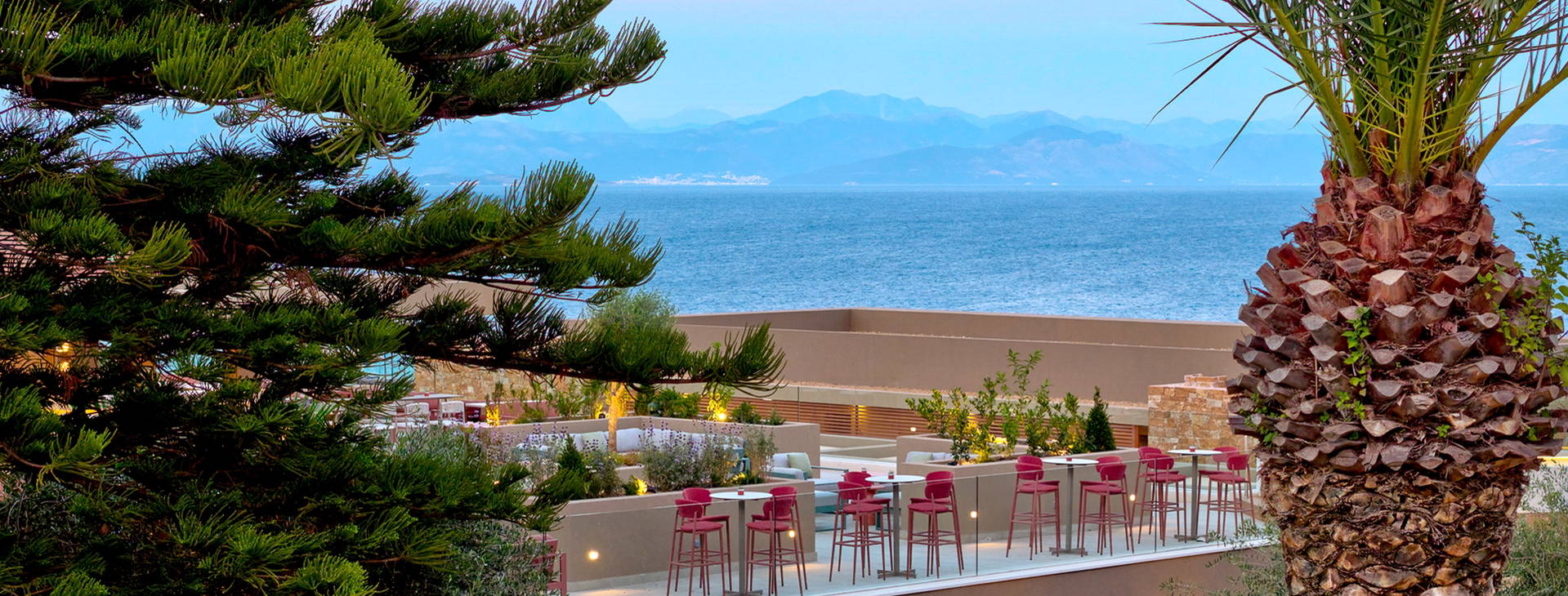 Elegantní hotel se svažuje z kopce v malé vesnici Agios Ioannis Peristeron. Asi 250 metrů od hotelu se nachází zastávka místní dopravy. Na letiště je to přibližně 16 km.