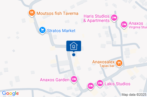 Budova se nachází přibližně 300 m od veřejné písečné pláže Anaxos (lehátka a slunečníky na pláži za poplatek).