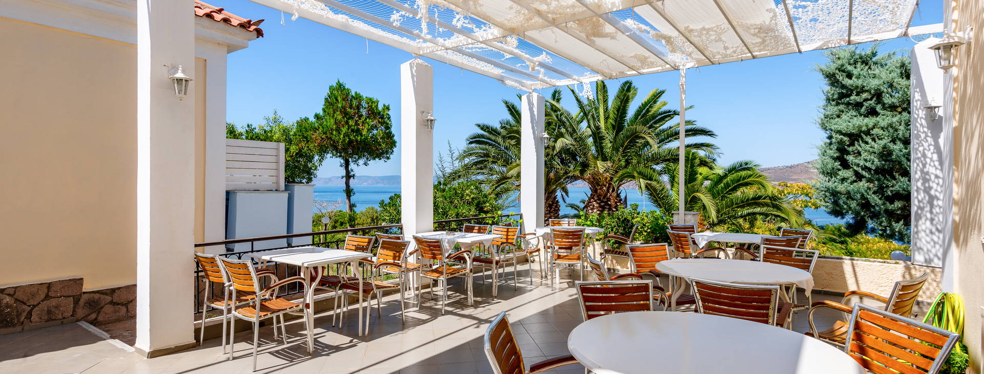 All Inclusive: snídaně (8:00-10:00), oběd (13:00-14:30) a večeře (19:00-21:00) podávané formou bufetu v hotelové restauraci. Nealkoholické nápoje (včetně kávy a čaje) a místní alkoholické nápoje (pivo, víno, ouzo) jsou k dispozici v barech mezi 10:00-22:00.