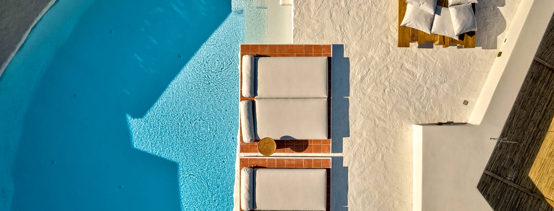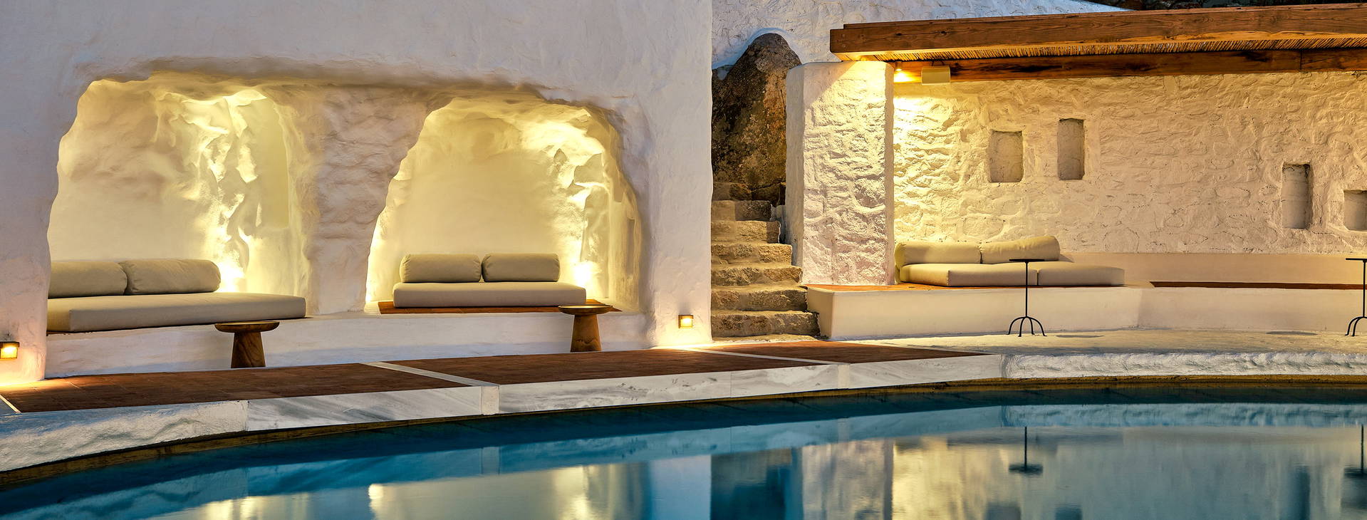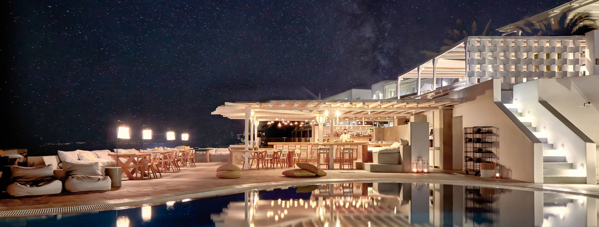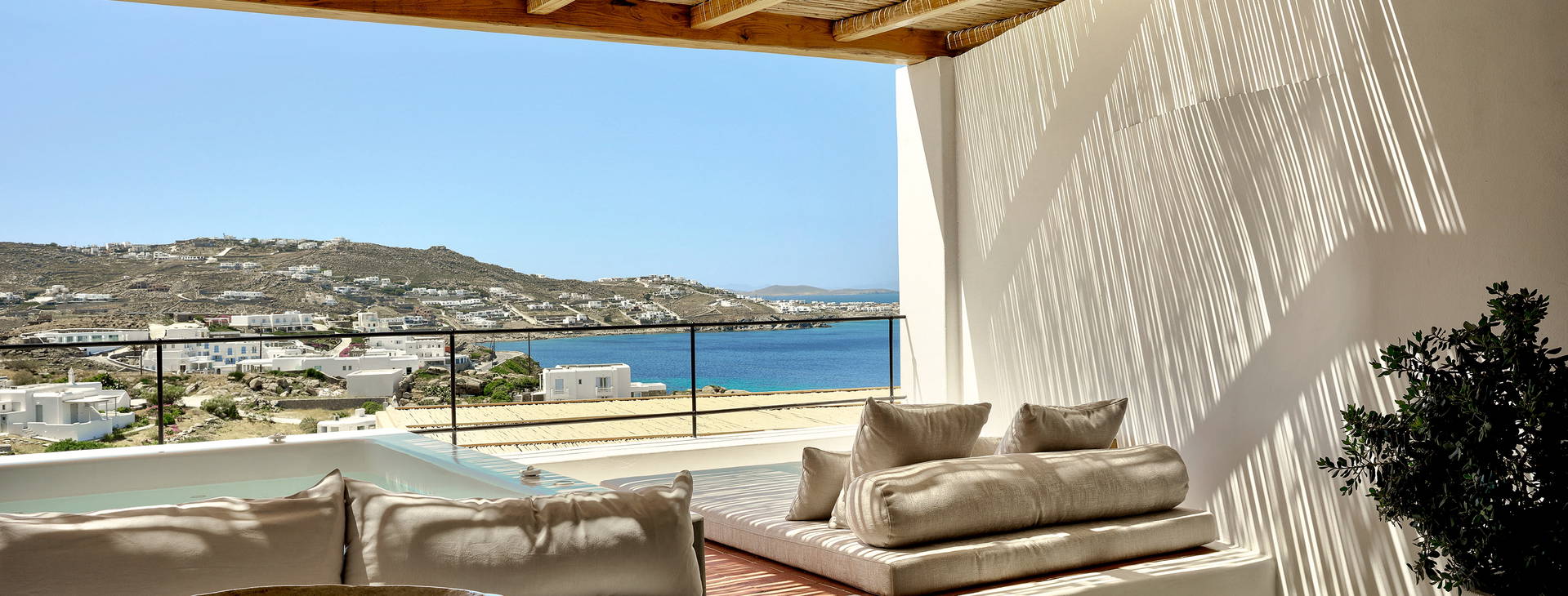 Luxusní hotel se nachází v krásné části města Mykonos, asi 2 km od starého přístavu Mykonos a asi 4 km od nového přístavu.