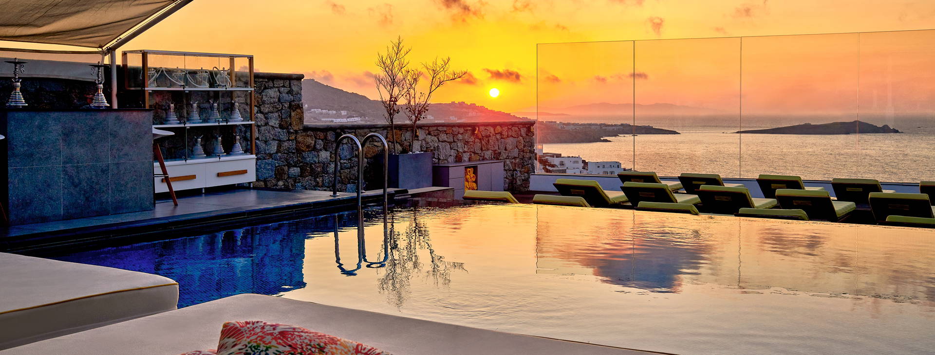 Hotel Myconian Korali Relais Chateaux se nachází asi 1 km od živého centra města Mykonos, kde najdete úžasný výběr restaurací, taveren, obchodů nebo klubů. V centru najdete také proslulé větrné mlýny a Malé Benátky (mimořádně romantické zákoutí ostrova, odkud si můžete vychutnat západ slunce za šumění mořských vln). Objekt se nachází přibližně 3 km od místního přístavu. Transfer z letiště do hotelu trvá přibližně 3,5 až 4 hodiny (délka transferu závisí na trajektovém spojení).