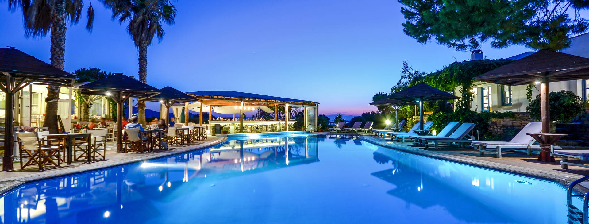 Dobře udržovaný hotel v kykladském stylu zasazený do krásné zahrady. Užijte si relaxaci u pěkně upraveného bazénu s výhledem na moře a město Naxos.