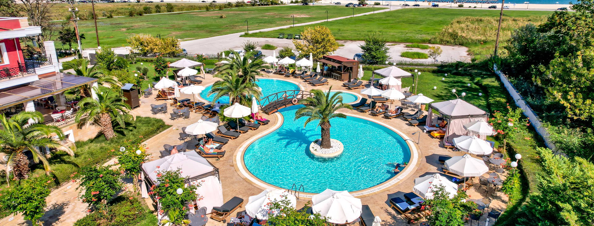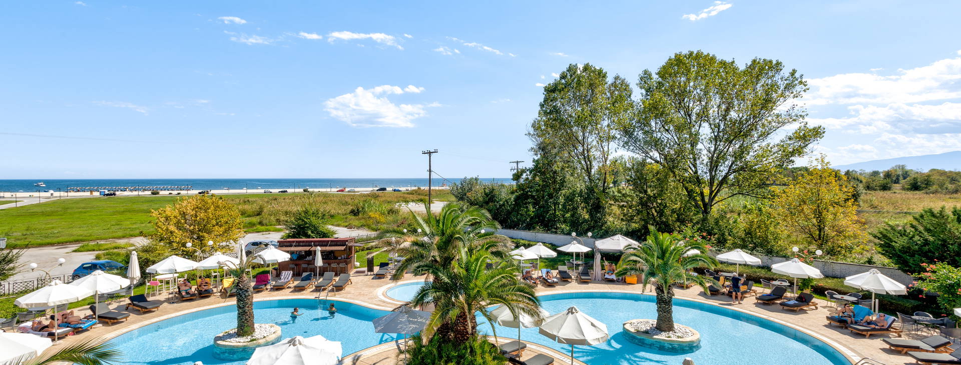 Hotel se nachází asi 120 m od krásné písečné pláže Olympic Beach (přes ulici). Lehátka a slunečníky na pláži jsou k dispozici zdarma.
