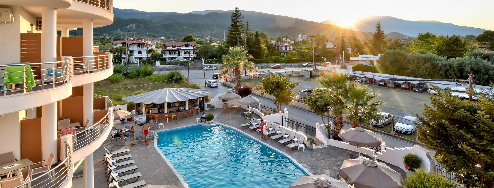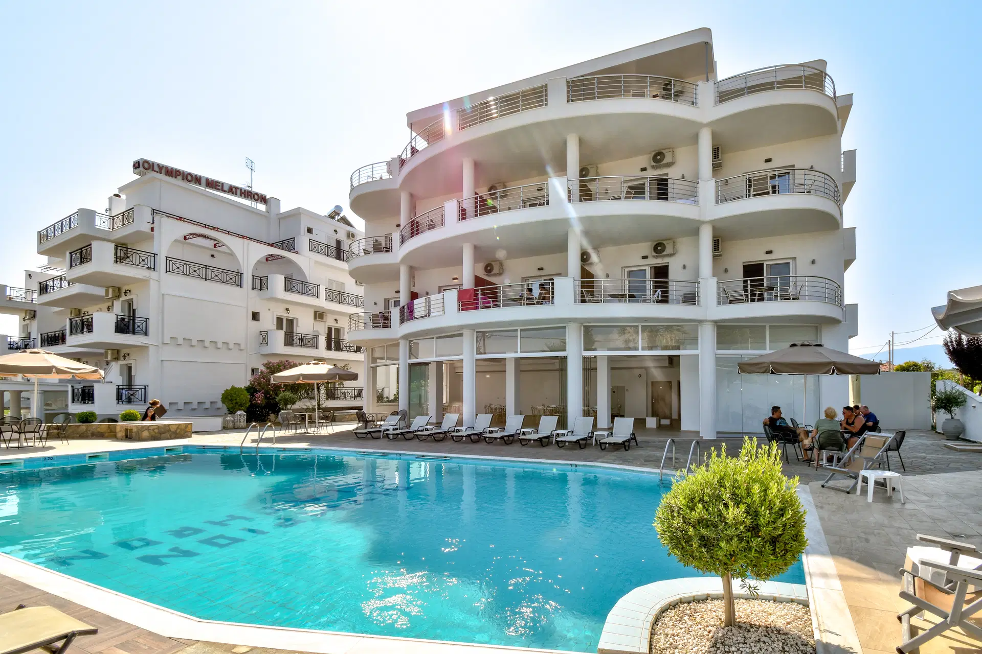 Ompion Melathron se nachází ve vesnici Platamonas. Od centra města je vzdálen přibližně 900 metrů. Kromě toho se jen cca 1 km od hotelu nachází vesnice Nei Pori. V okolí hotelu se nachází mnoho restaurací, barů a kaváren. Hotel a letiště v Soluni dělí 135 km.