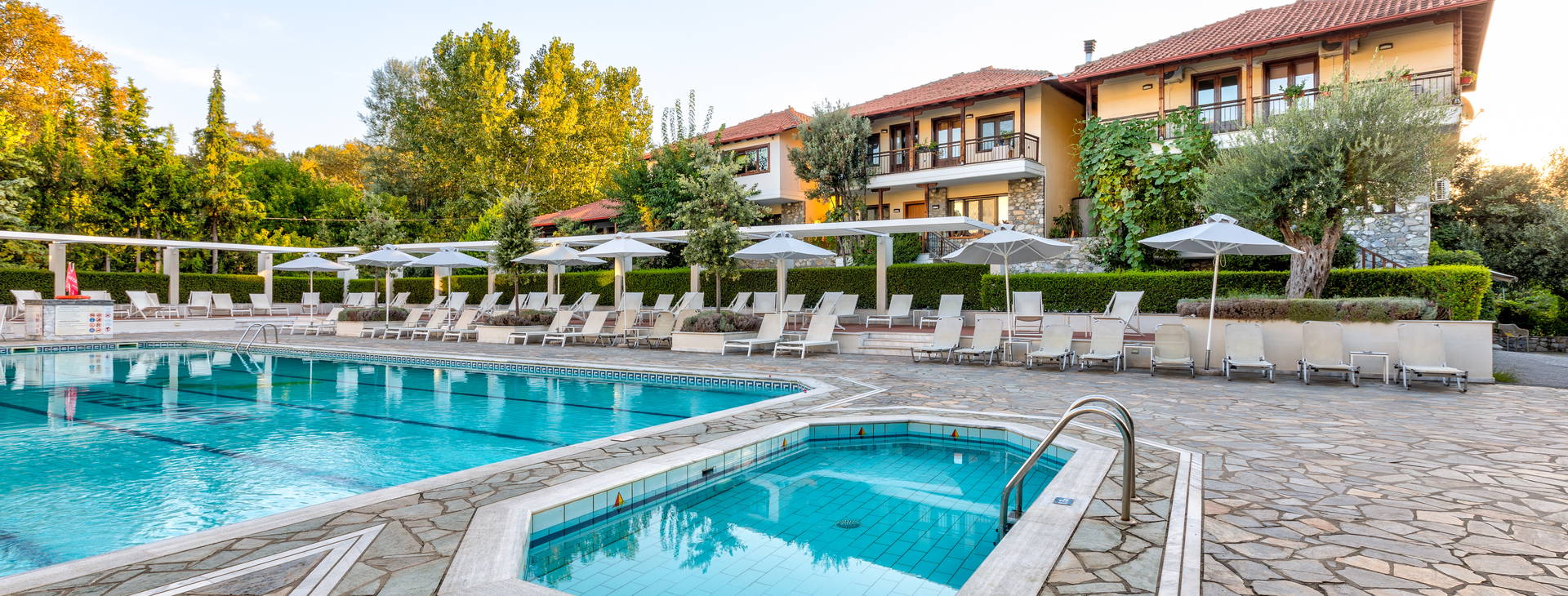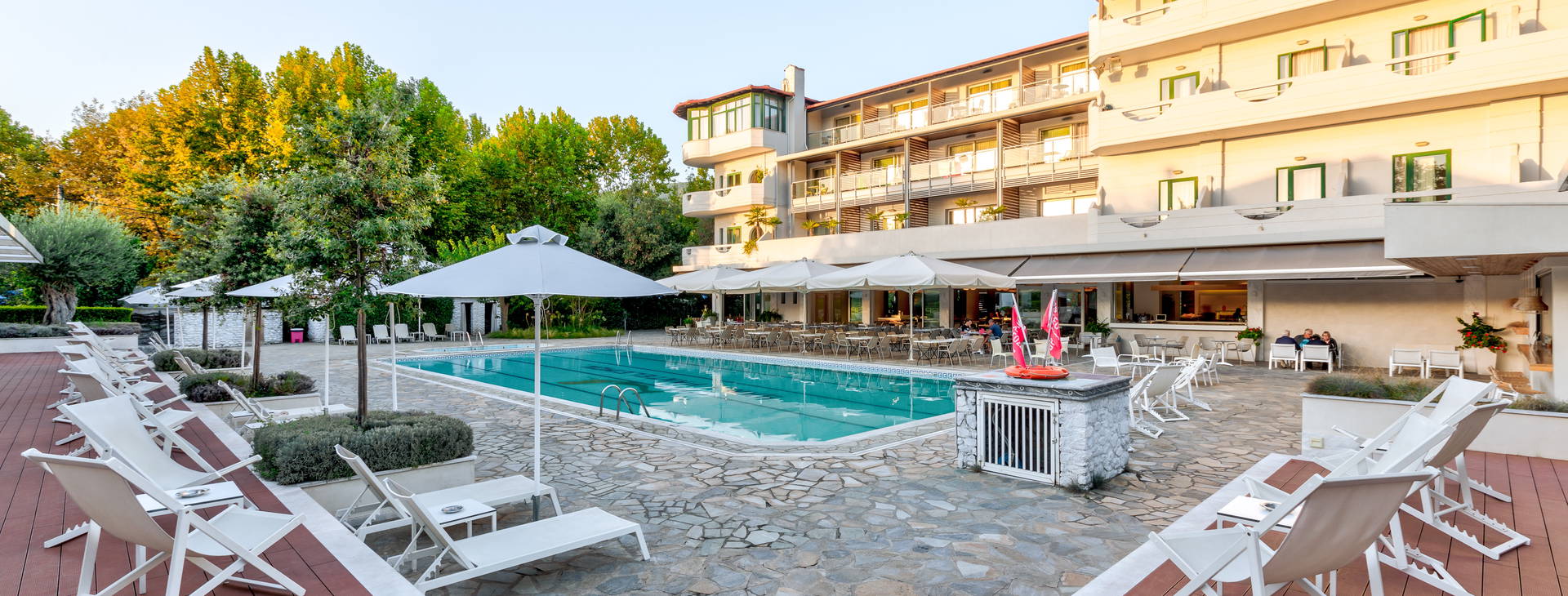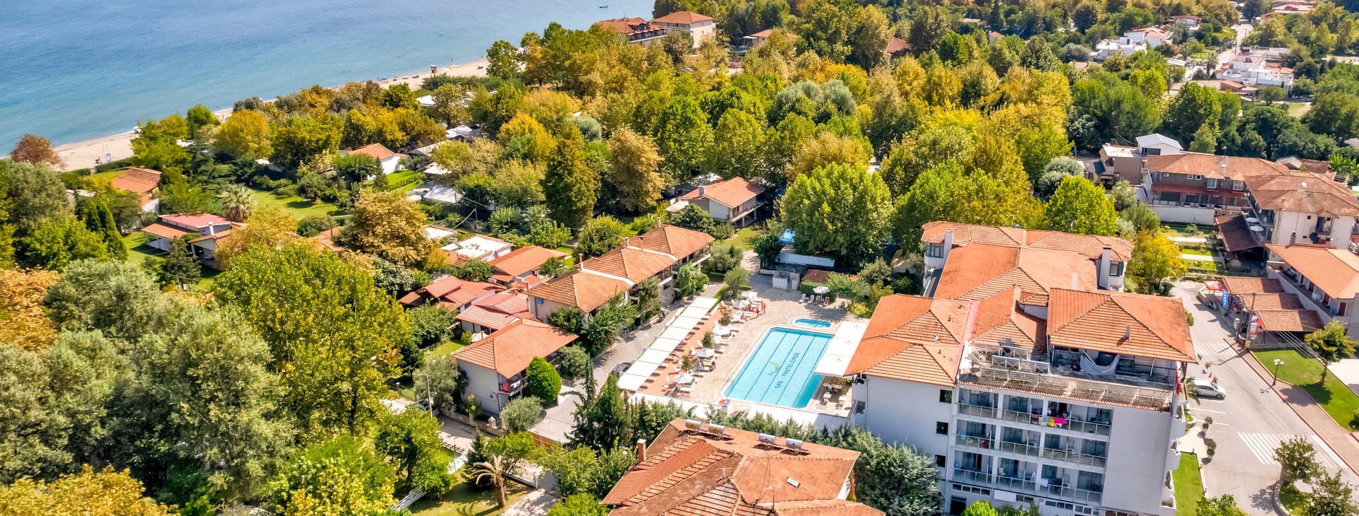 Hotel se nachází v malé, klidné vesničce Pantaleimonas s útulnými kavárnami a tavernami. Asi 8 km od centra Platamonas - na úpatí masivu hory Olymp, asi 6 km od Leptokárie. Přibližně. 700 m od hotelu se nachází zastávka veřejné dopravy. Cca. 1,5 km od hotelu se na malém kopci nachází středověký hrad Pantelemon. Transfer z letiště do hotelu trvá přibližně 2 hodiny.