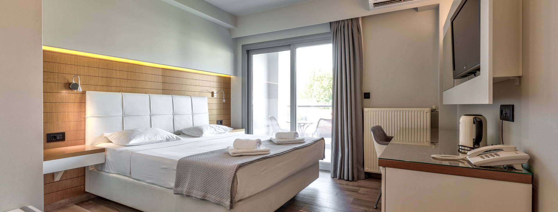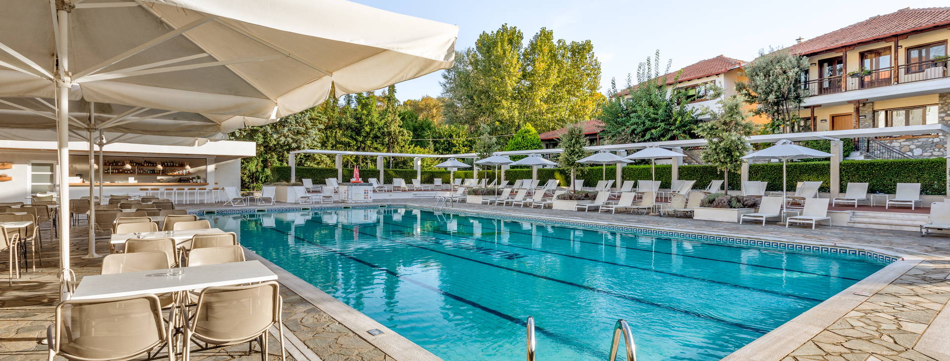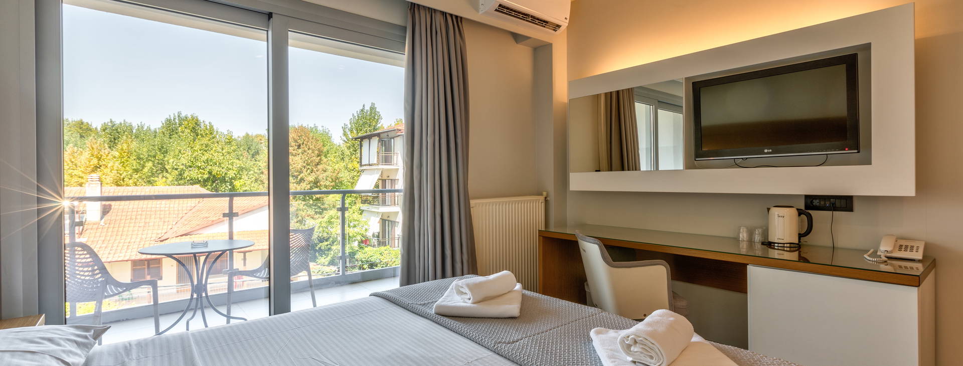 Hotel se nachází v malé, klidné vesničce Pantaleimonas s útulnými kavárnami a tavernami. Asi 8 km od centra Platamonas - na úpatí masivu hory Olymp, asi 6 km od Leptokárie. Přibližně. 700 m od hotelu se nachází zastávka veřejné dopravy. Cca. 1,5 km od hotelu se na malém kopci nachází středověký hrad Pantelemon. Transfer z letiště do hotelu trvá přibližně 2 hodiny.